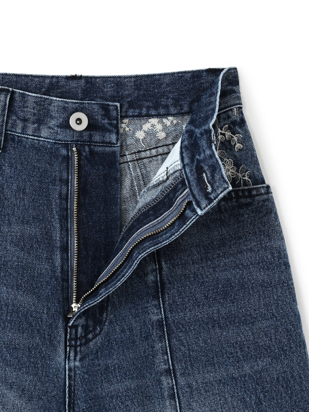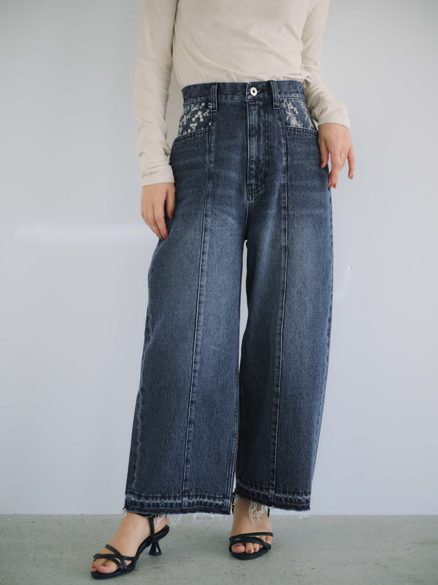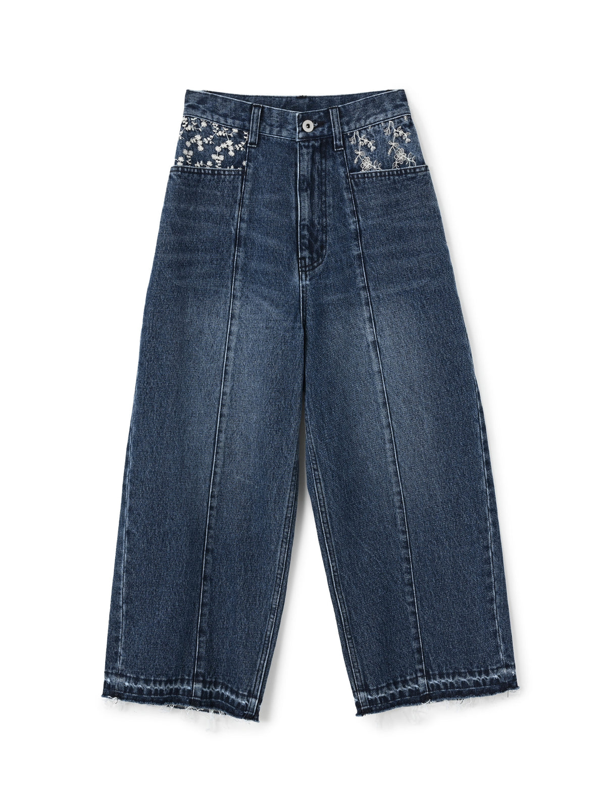 左右非対称の繊細刺繍がアクセント♡品よく華やぐ、大人の映えデニム