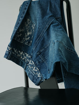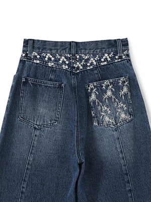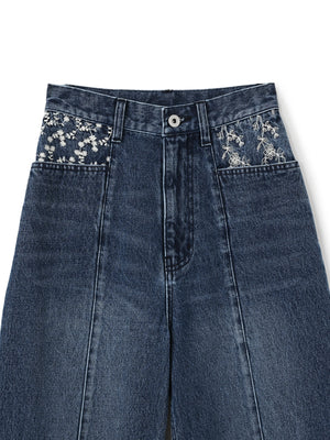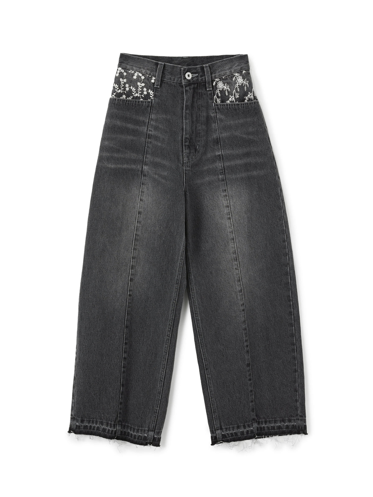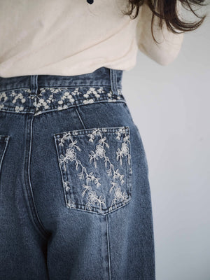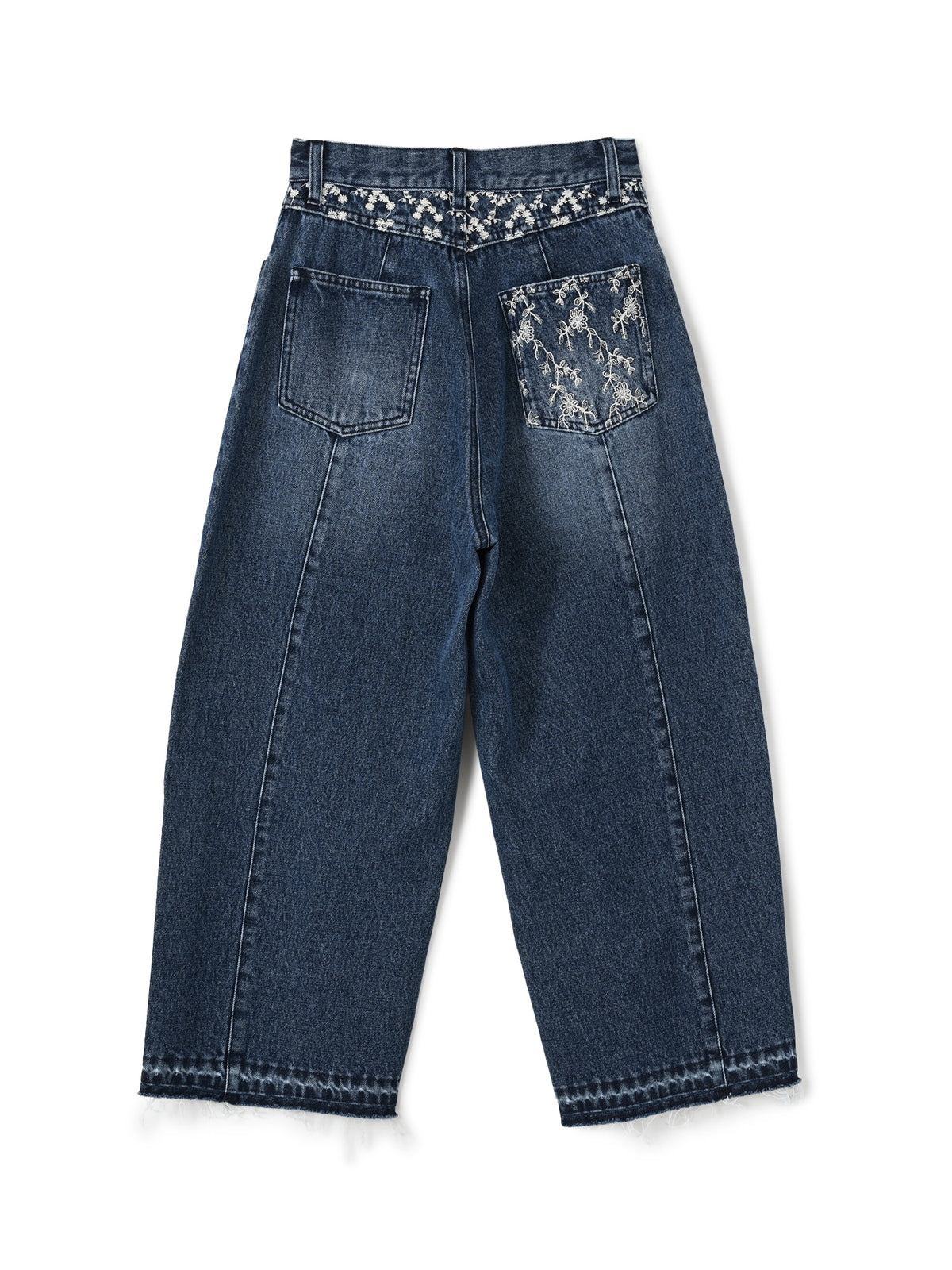 左右非対称の繊細刺繍がアクセント♡品よく華やぐ、大人の映えデニム
