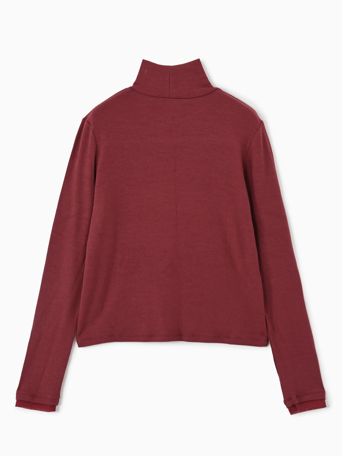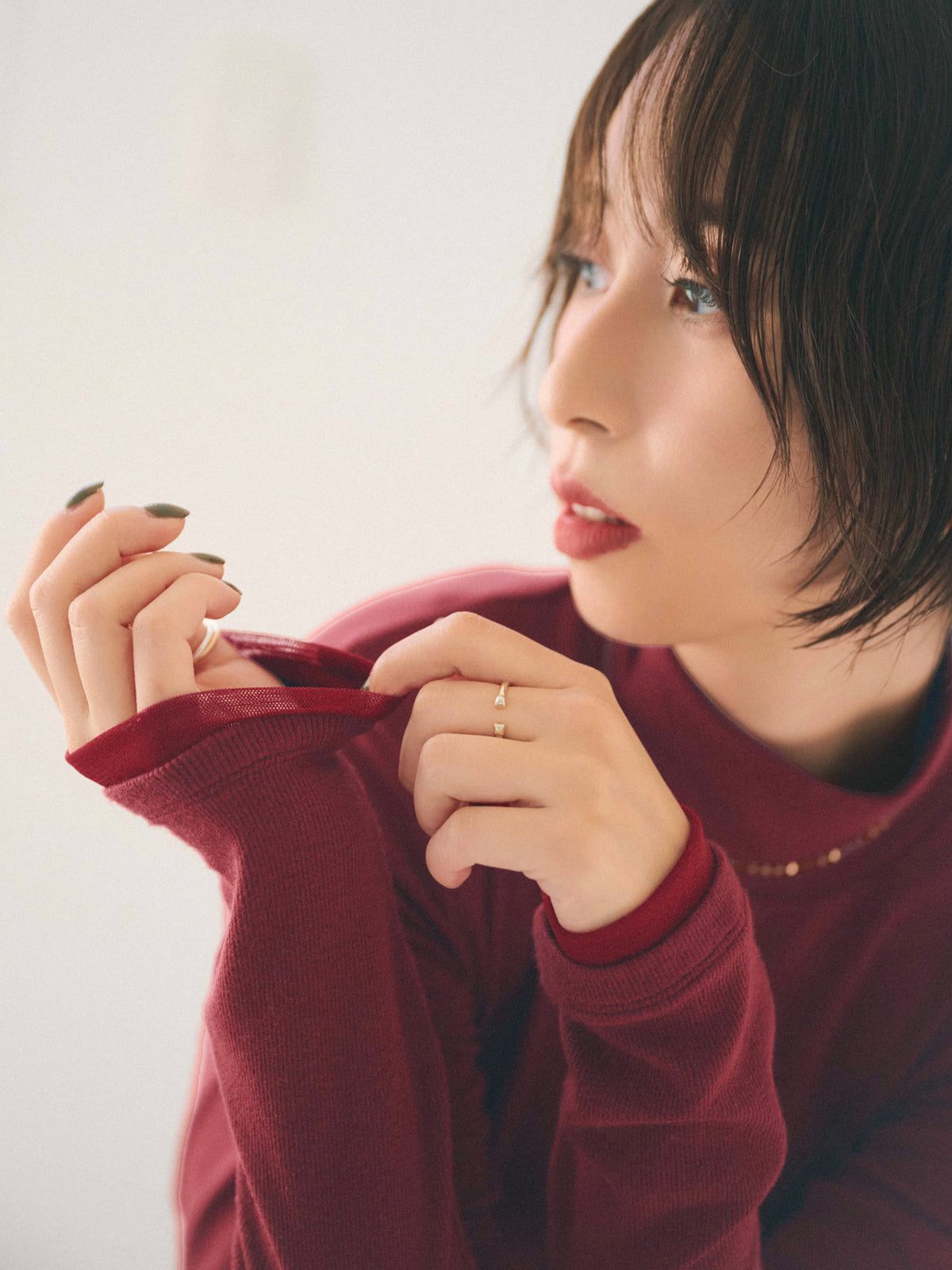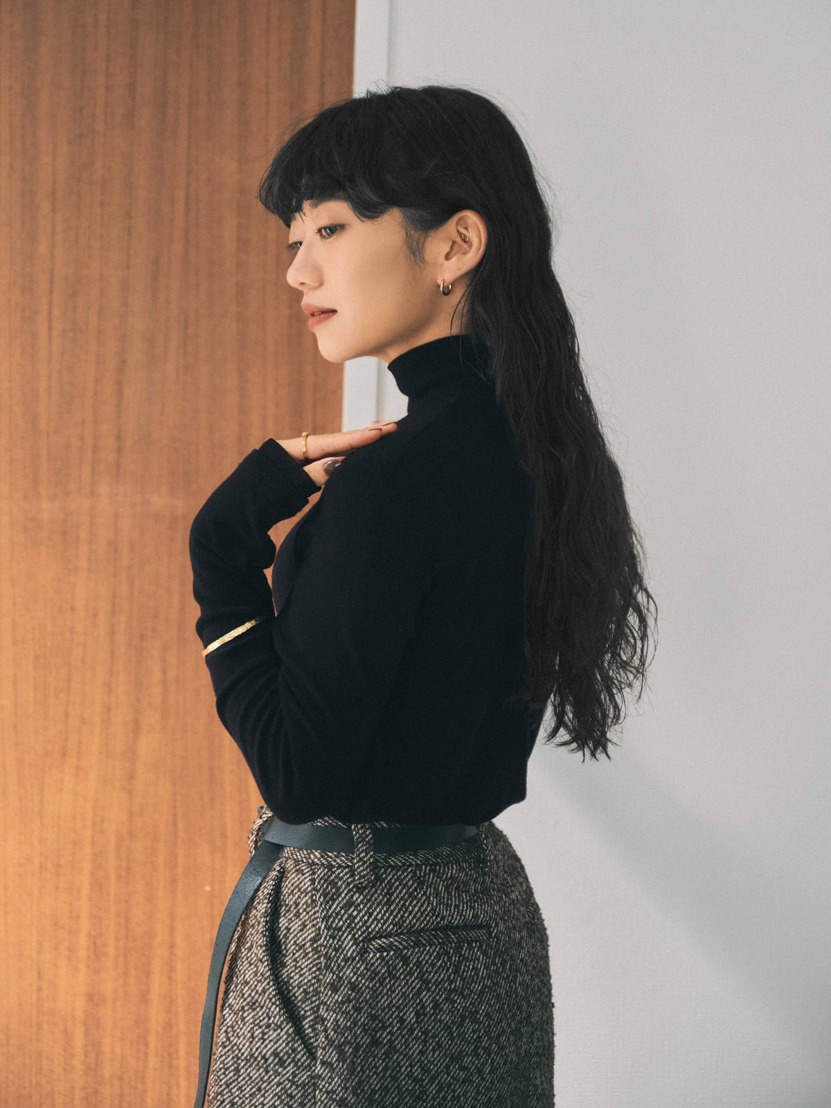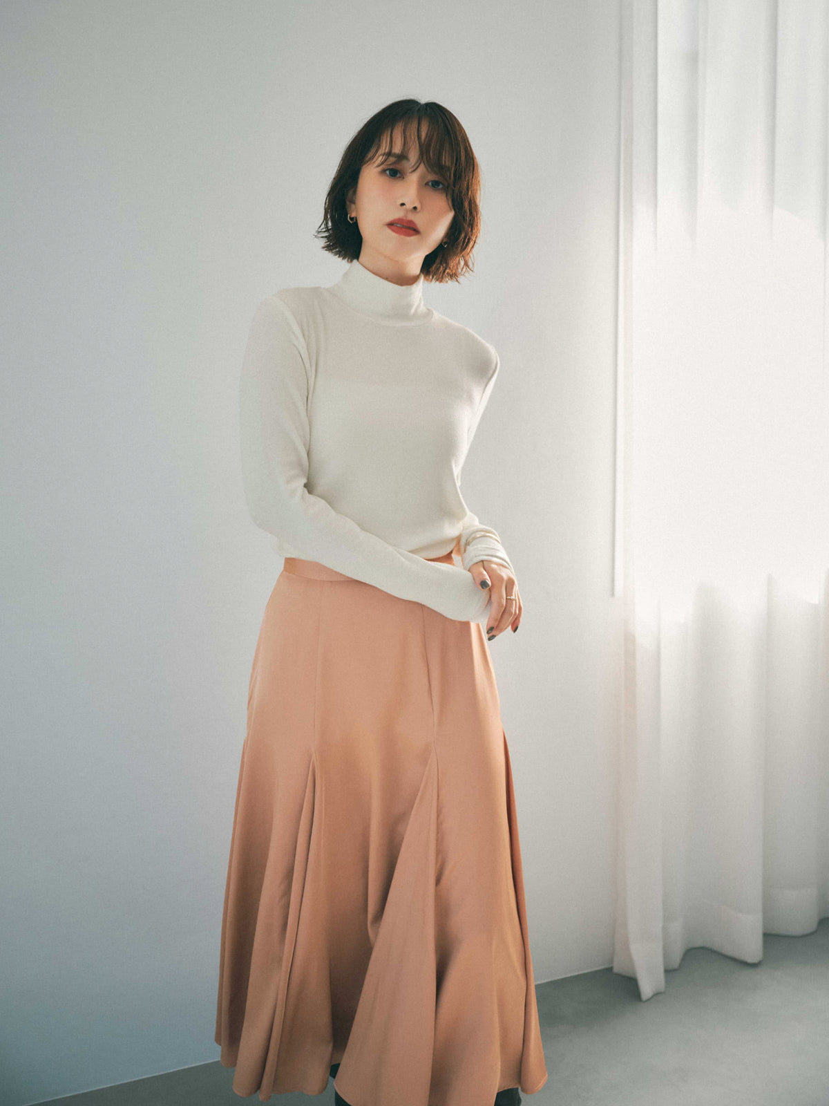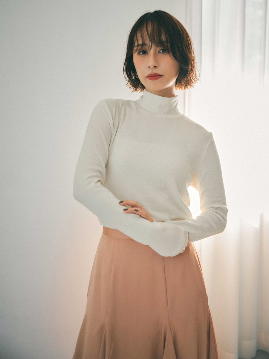 大人気のハイネックウールベアテレコトップスに新しいデザインが登場!袖口のさりげないチュールが手元を華やかに見せコーデのアクセントに◎ピタッとしすぎないフィット感でもっちりとしたストレスフリーな着心地なので、この冬大活躍間違いなし!