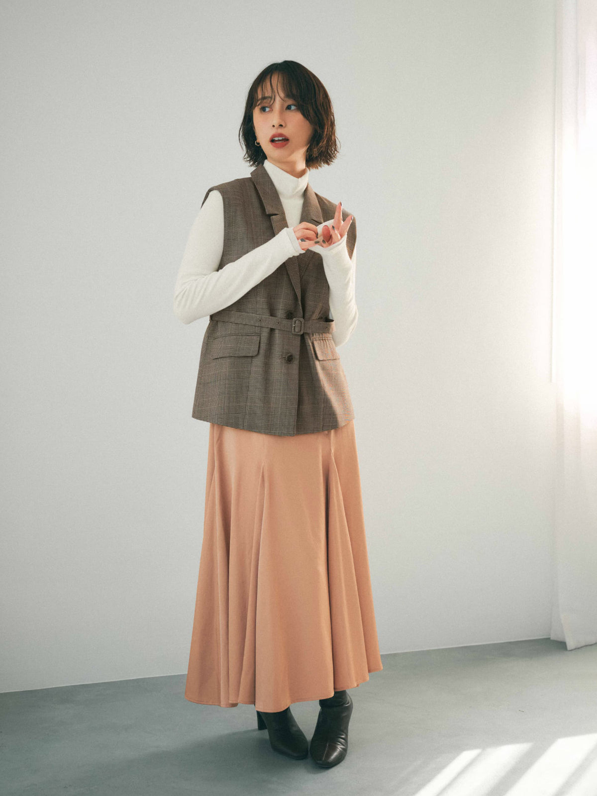1枚着はもちろん、ニットやシャツ、ジャンスカのインにさっと仕込むだけで、スタイリングがぐっと洗練された印象に。