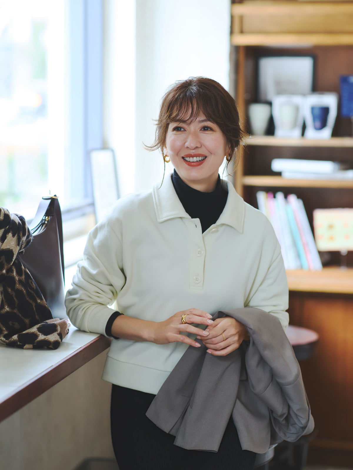 スキッパーデザインでいつものスウェットスタイルも新鮮にアップデート。