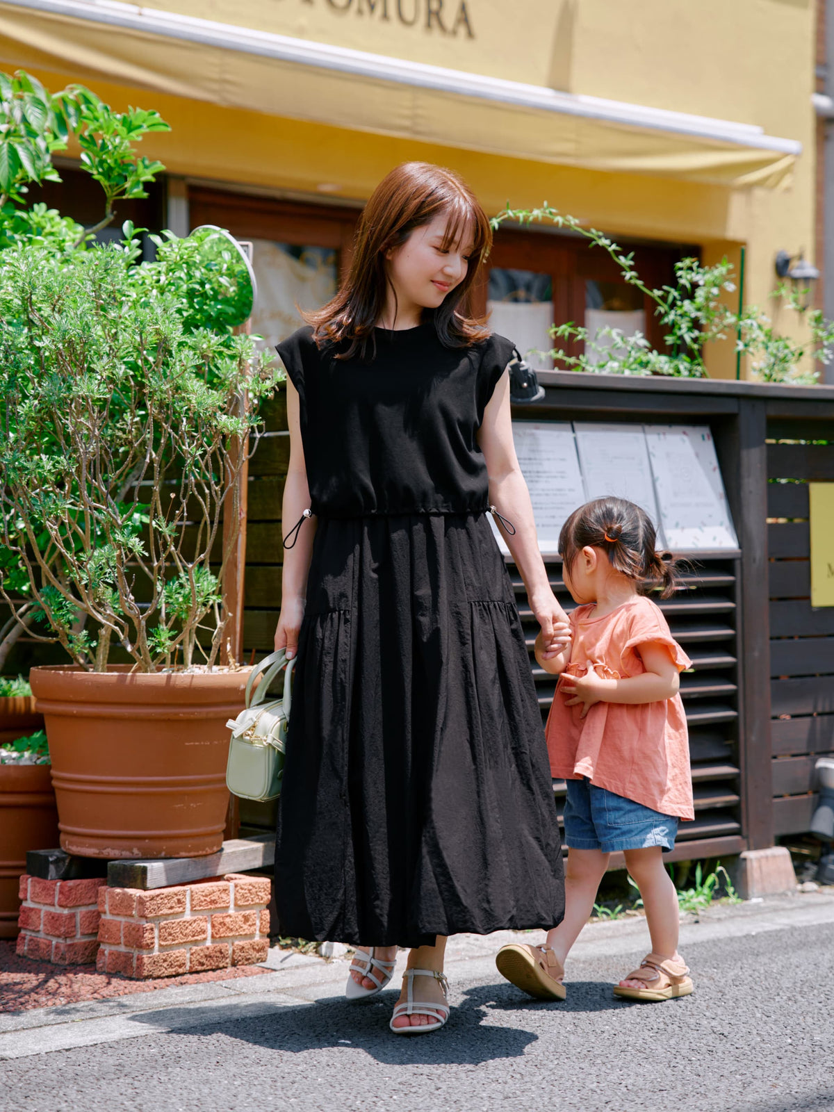 トップス裾のドロストをきゅっと絞ることでふんわりとしたフォルムになり、ウエスト位置が高く見えるバランスに。足元は、【LE TALONコラボ】コンビベルトスニーカーサンダルとの合わせがおすすめです。華奢なストラップサンダルを合わせて大人フェミニンな着こなしも◎スタイリング要らずの着映えワンピースは、デイリーからちょっとしたおでかけ、旅行など幅広いシーンで活躍すること間違いなしです。