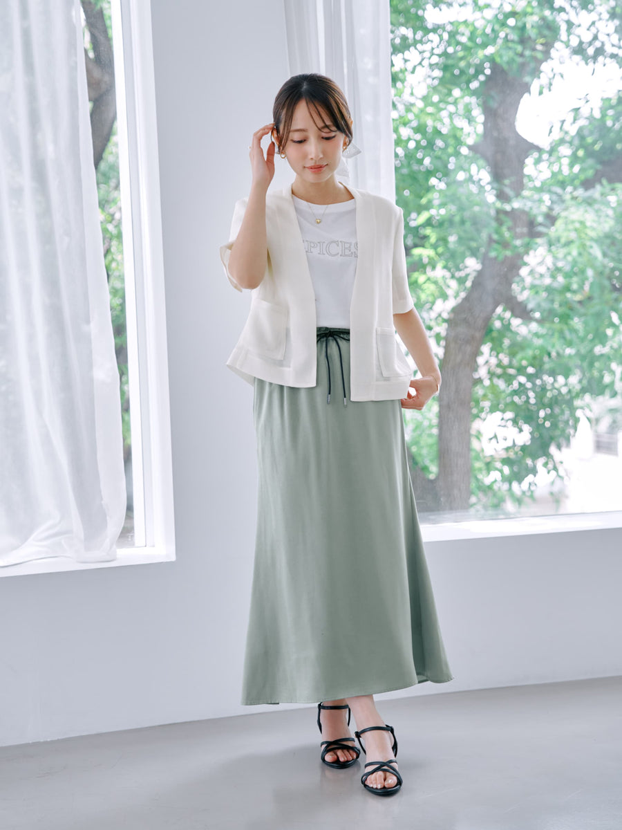 【流れるようなシルエットが美しい♡小柄さん向けナローサテンスカート】