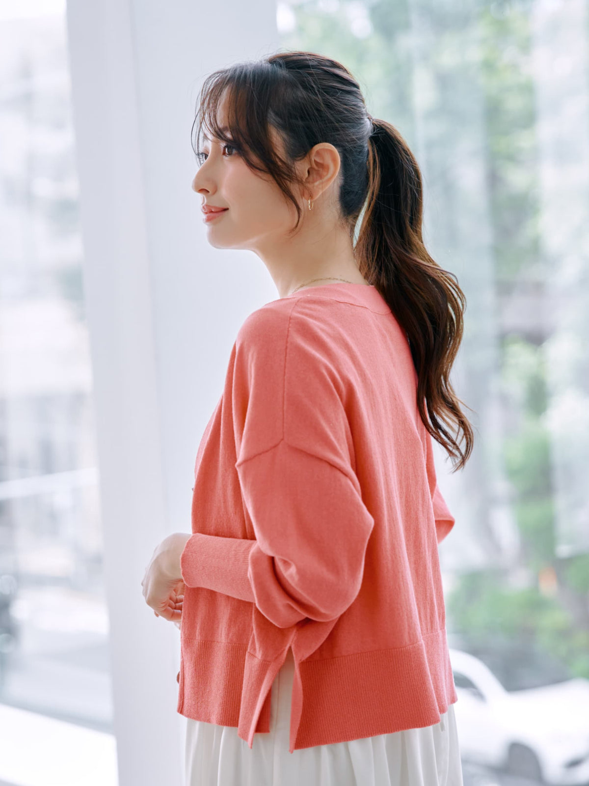 深めのVネックと脇のスリットがこなれ感をプラスしてくれます。