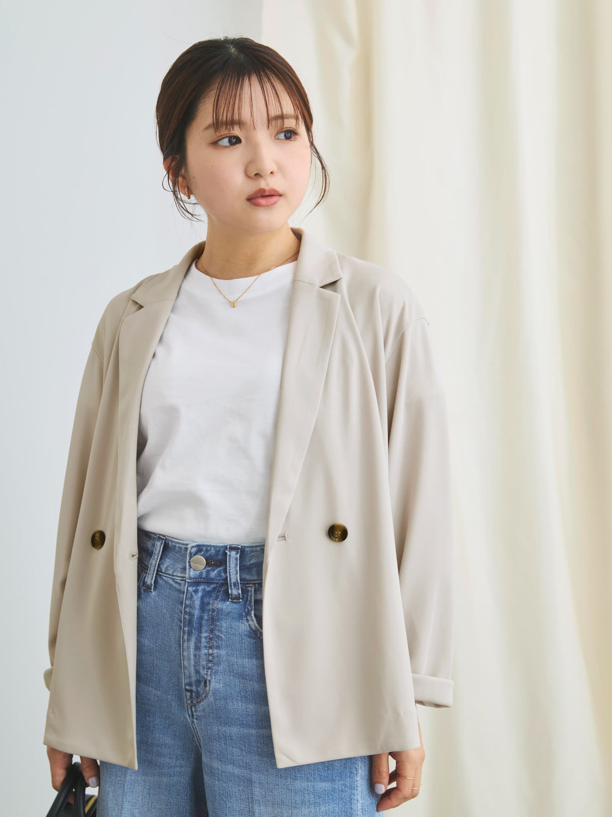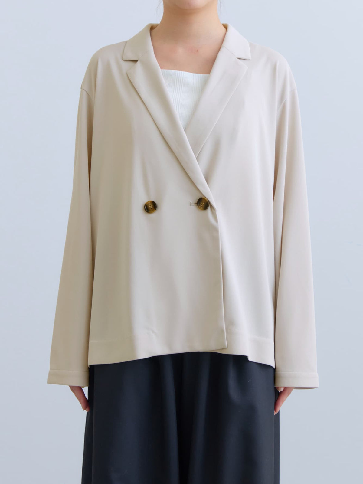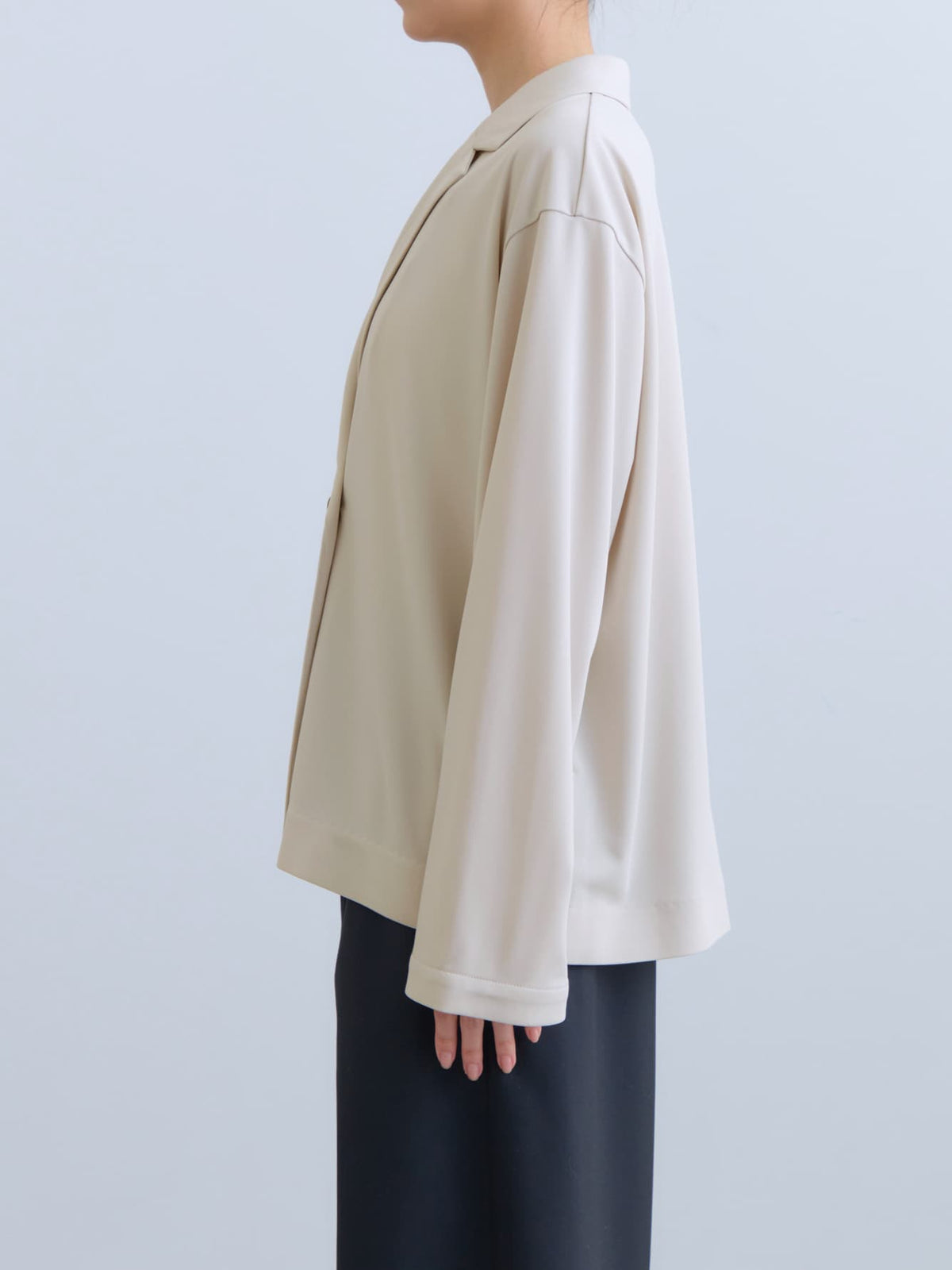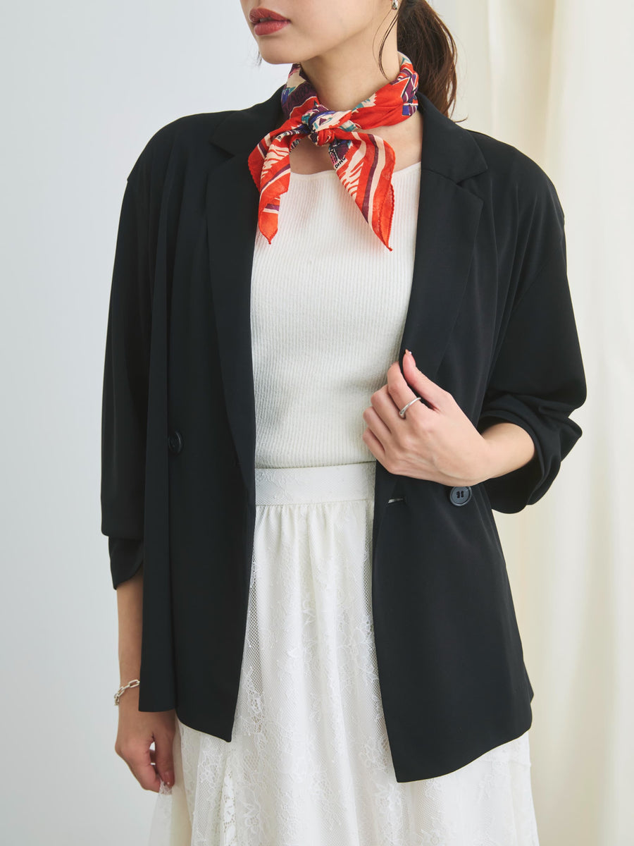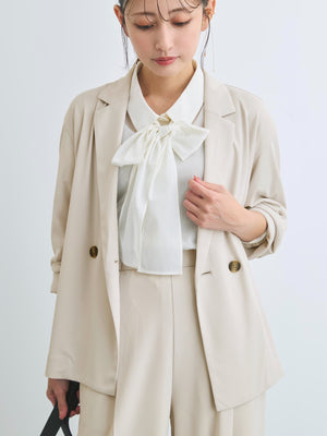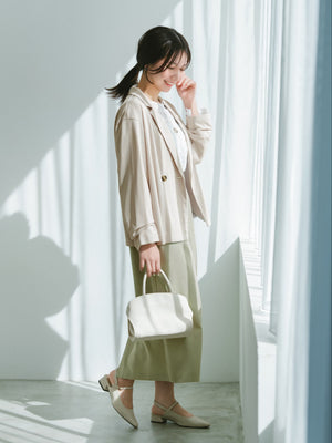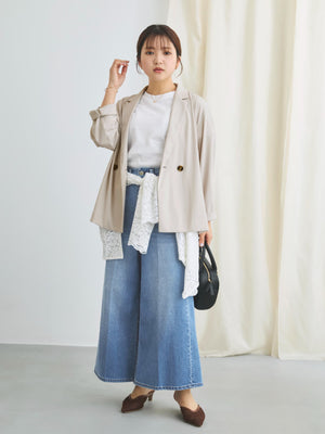 小柄さんに合わせて釦位置やラペルの幅を設計しているので、きちんと感がありながらも、カーディガンのように羽織れるラフさが魅力のアイテム。通勤シーンはもちろん、春夏シーズンから秋まで長く活躍してくれます。