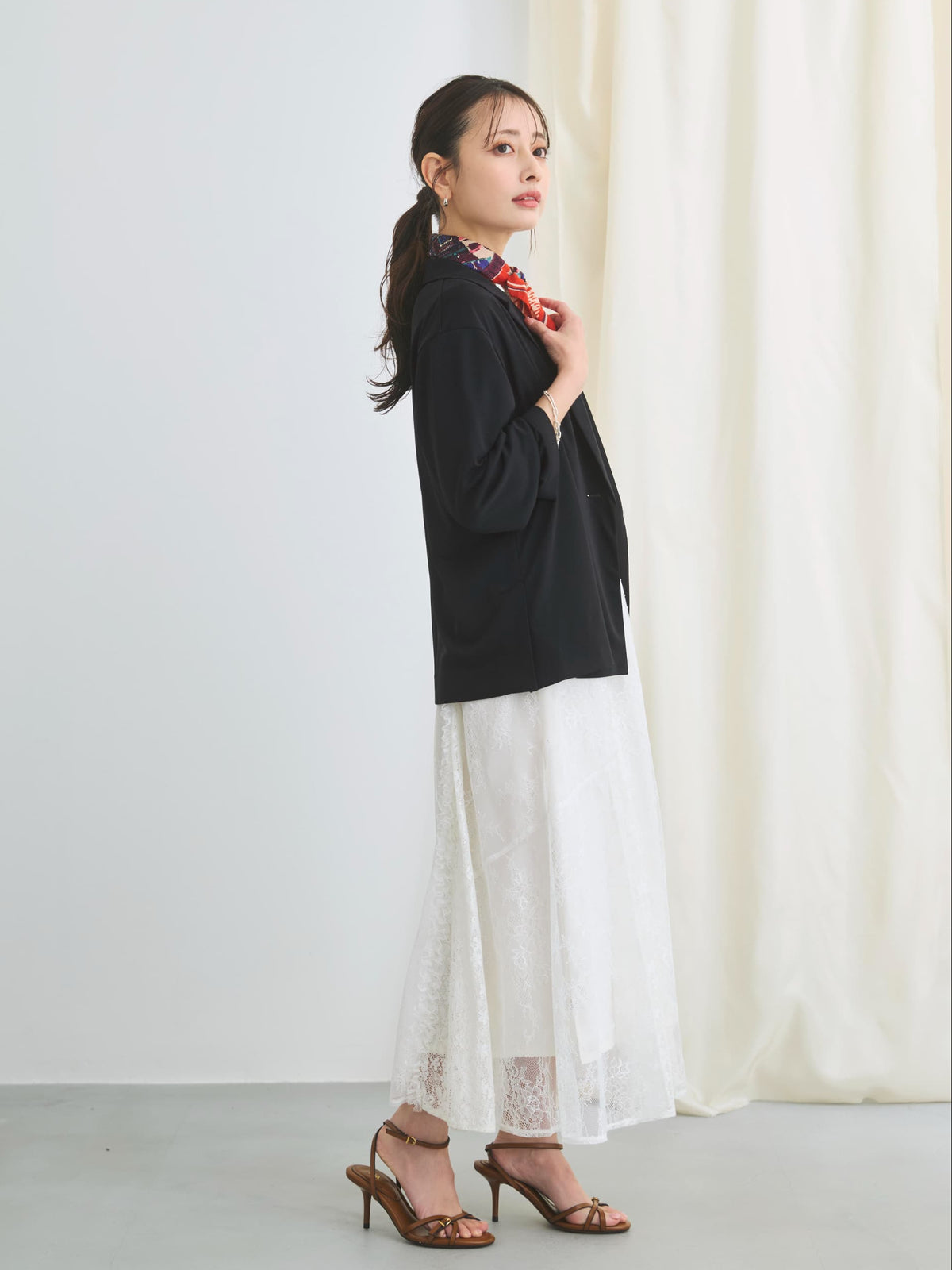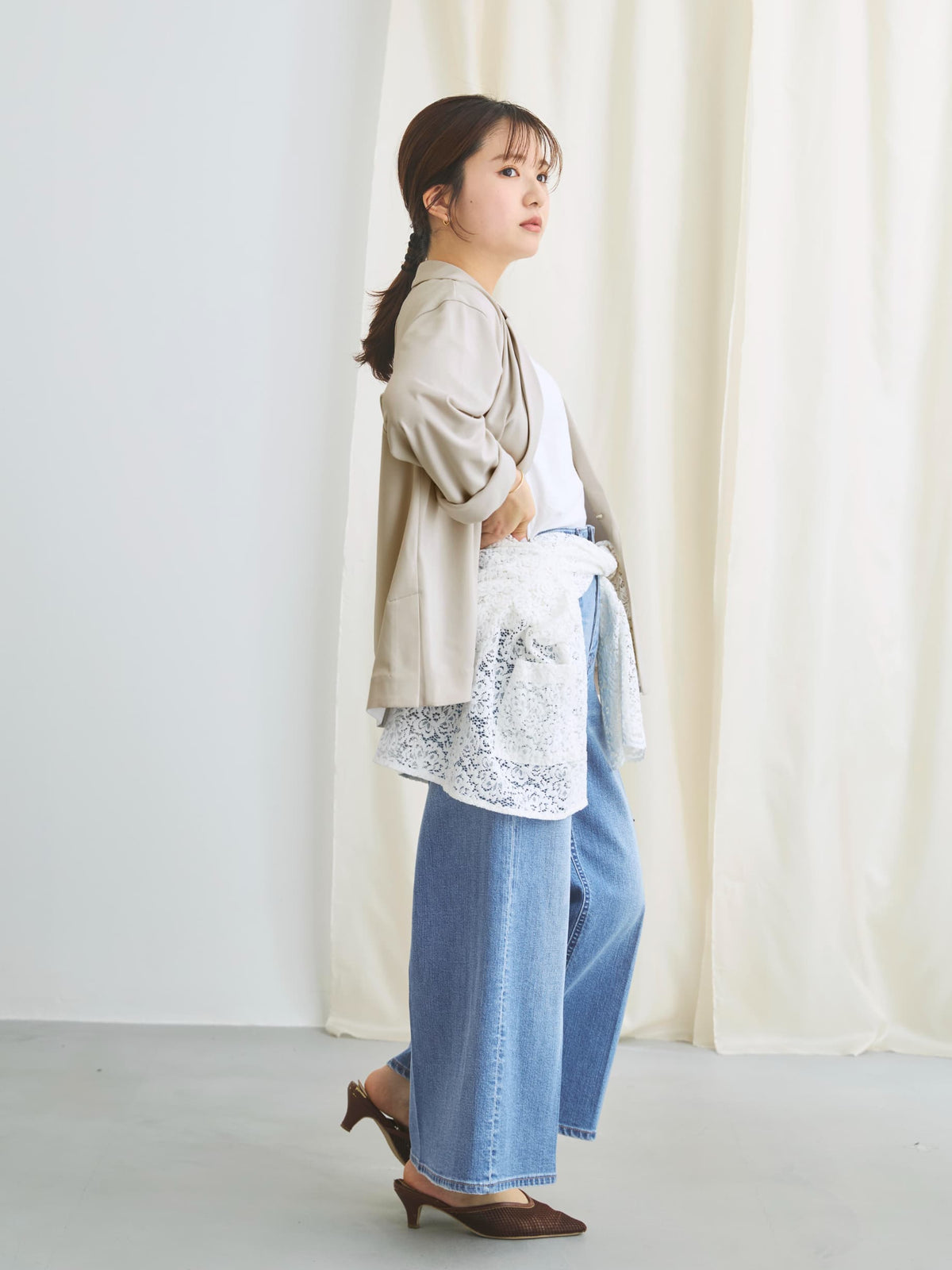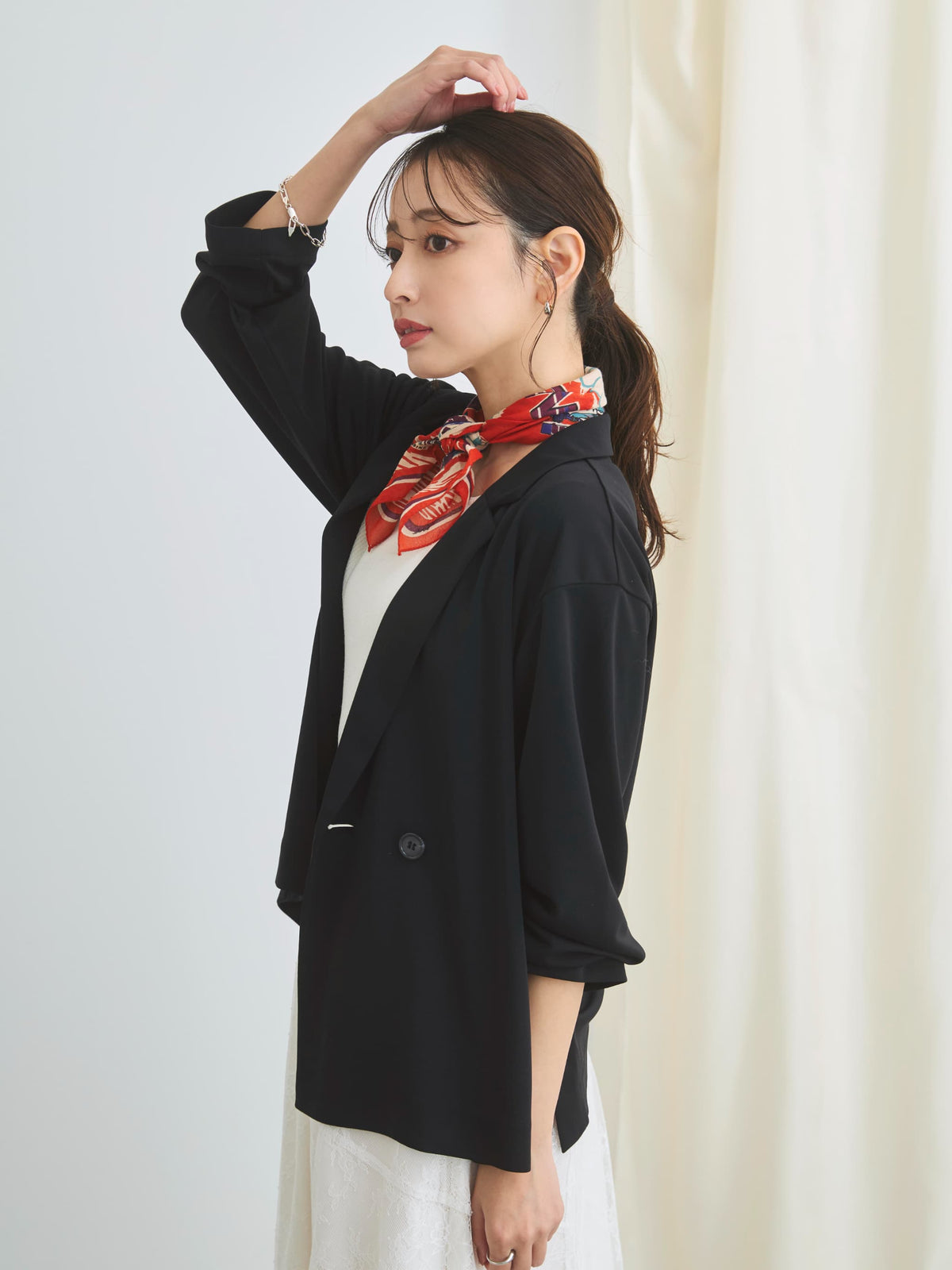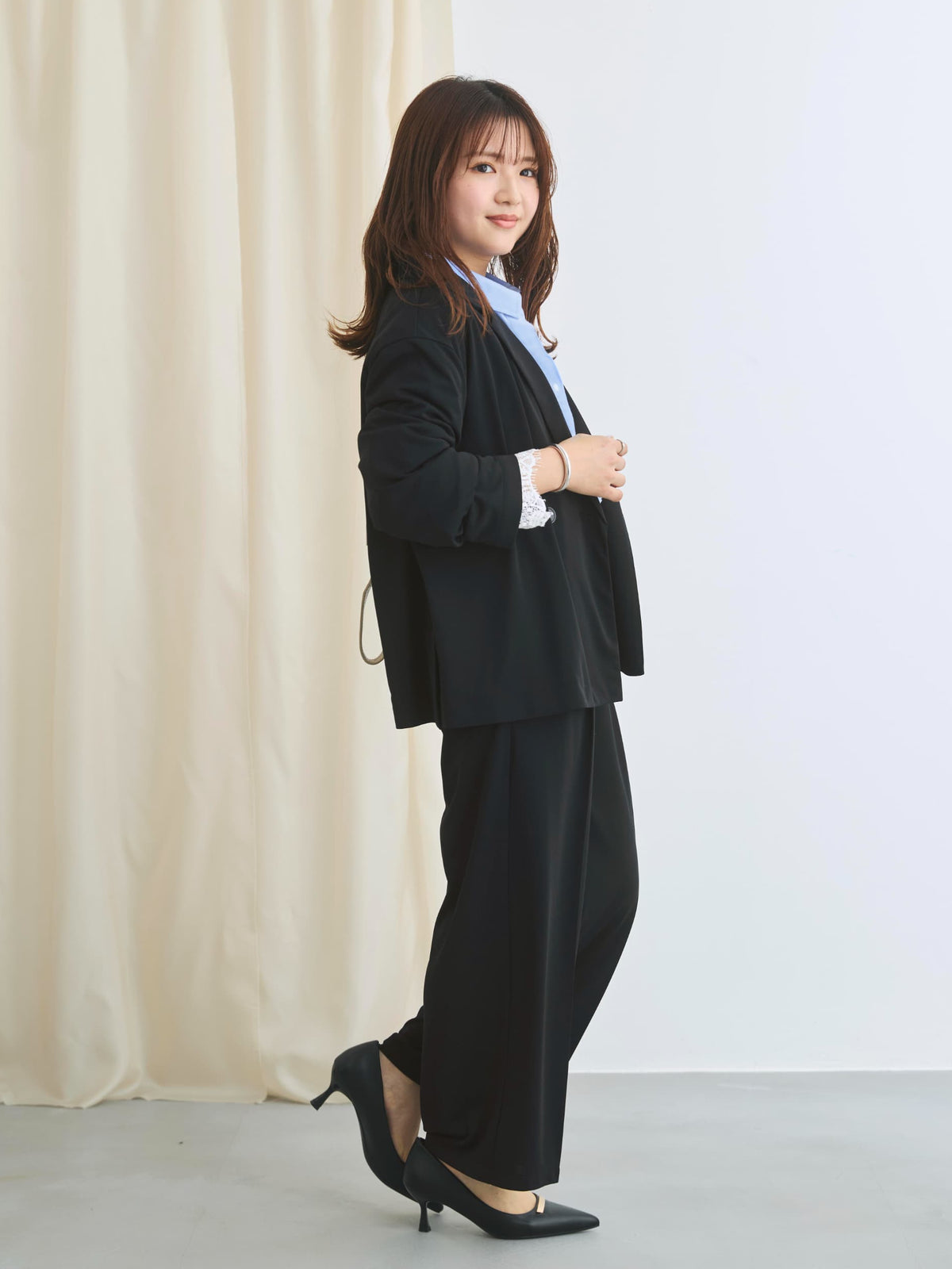 小柄さんに合わせて釦位置やラペルの幅を設計しているので、きちんと感がありながらも、カーディガンのように羽織れるラフさが魅力のアイテム。通勤シーンはもちろん、春夏シーズンから秋まで長く活躍してくれます。
