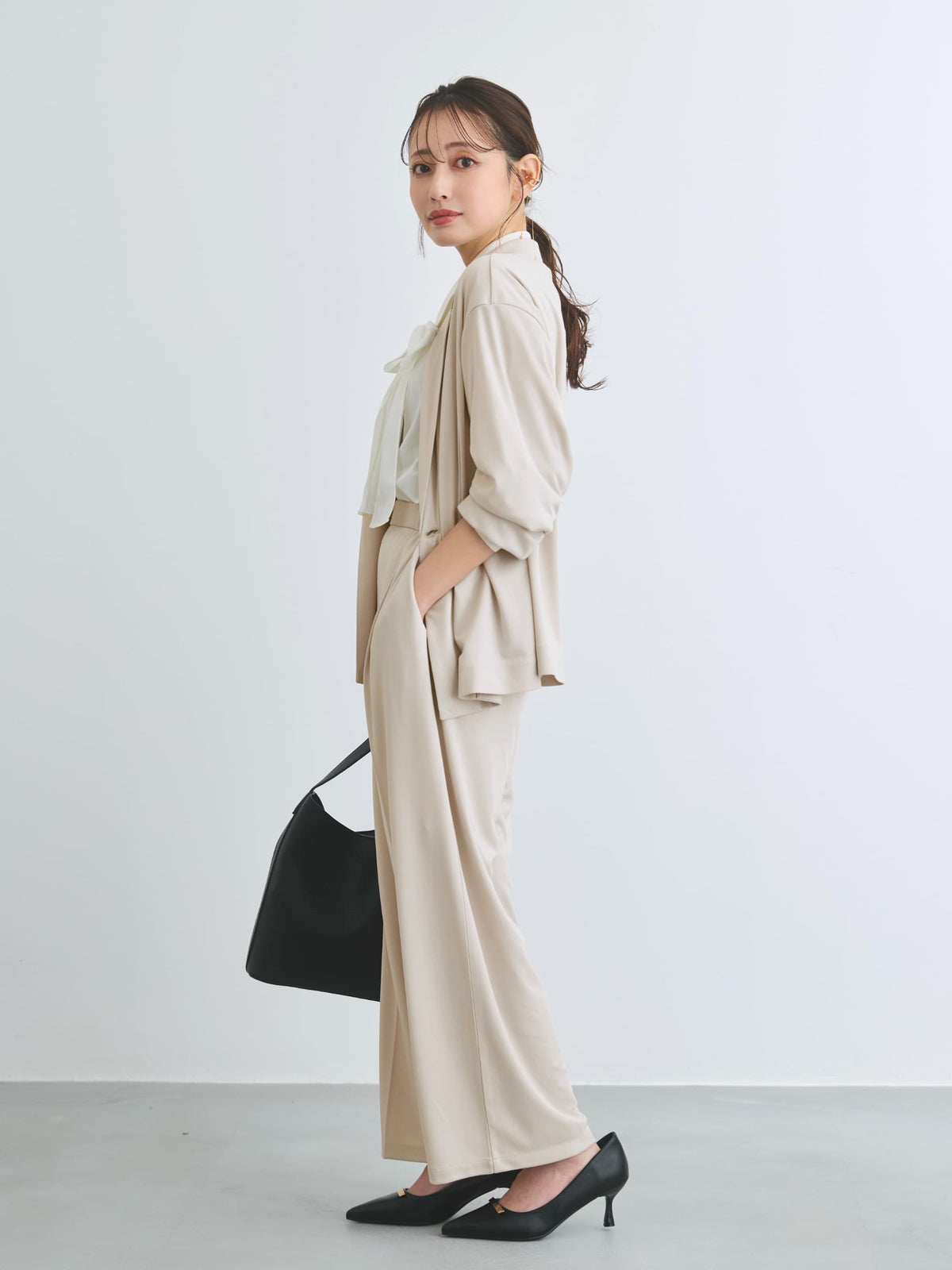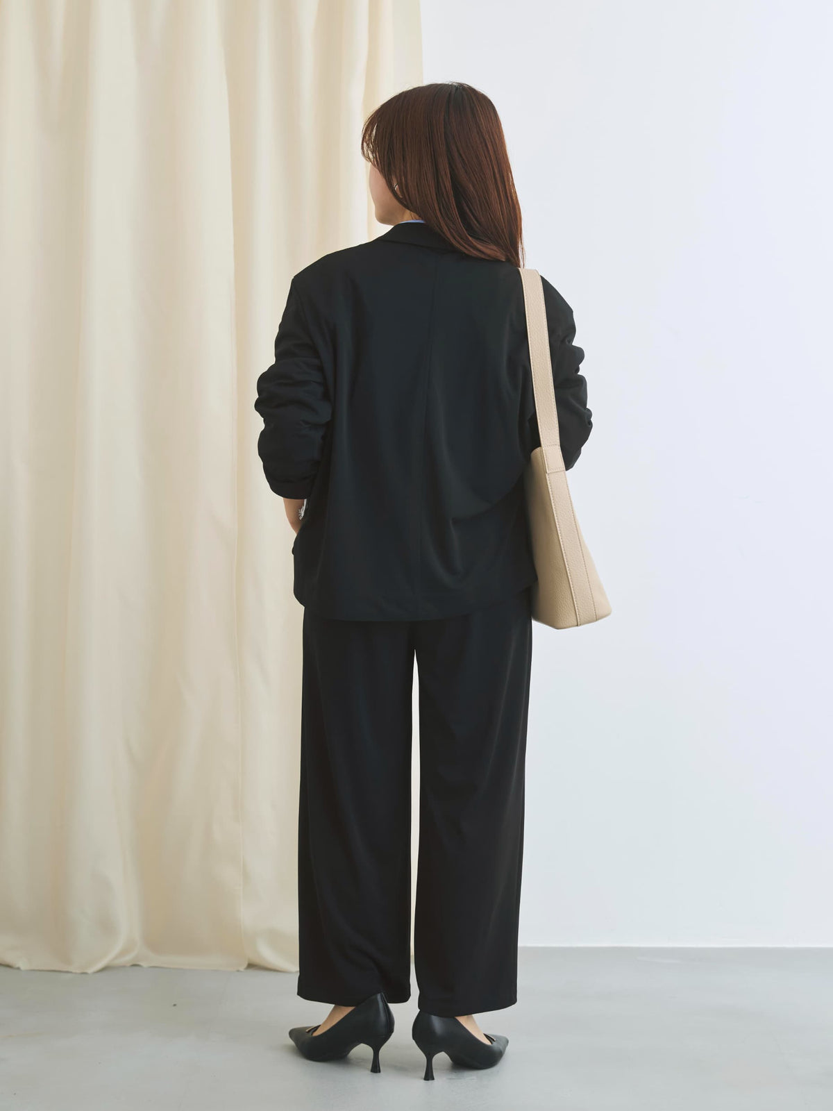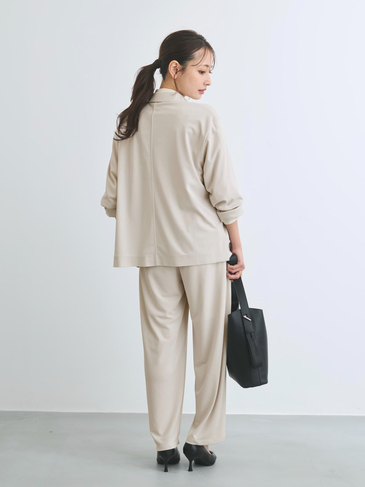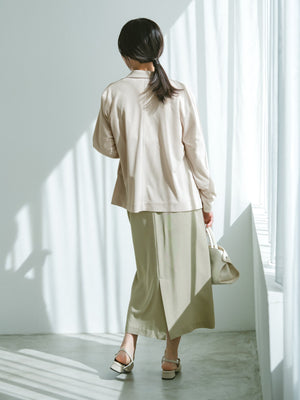 持ち運びにも便利な防シワ性とイージーケアも魅力のアイテム。自然と身体に馴染んでくれる落ち感のある素材が大人のこなれ感あるスタイルにマッチしてくれます。