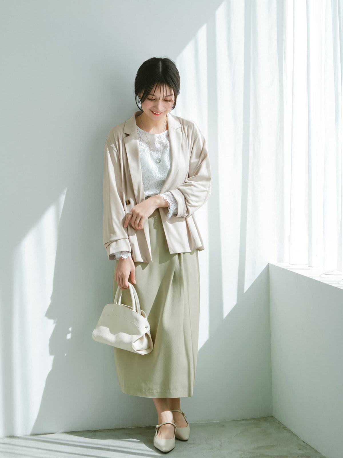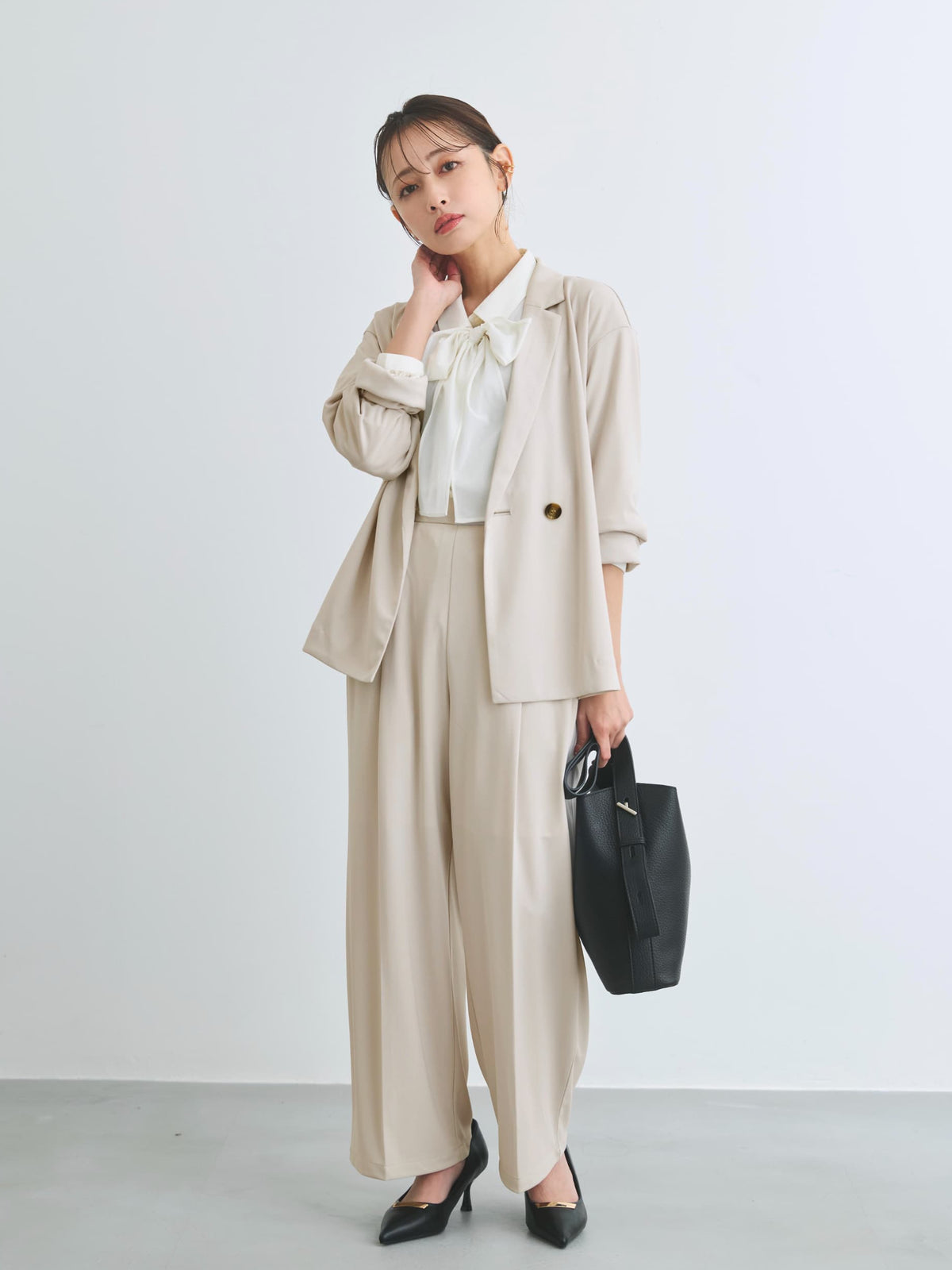 149cm | B:77 W:60 H:83 股下:68.5 | ワンサイズ着用 ライトベージュ