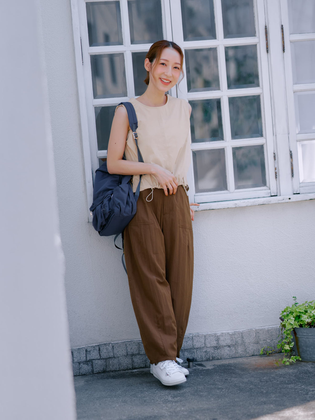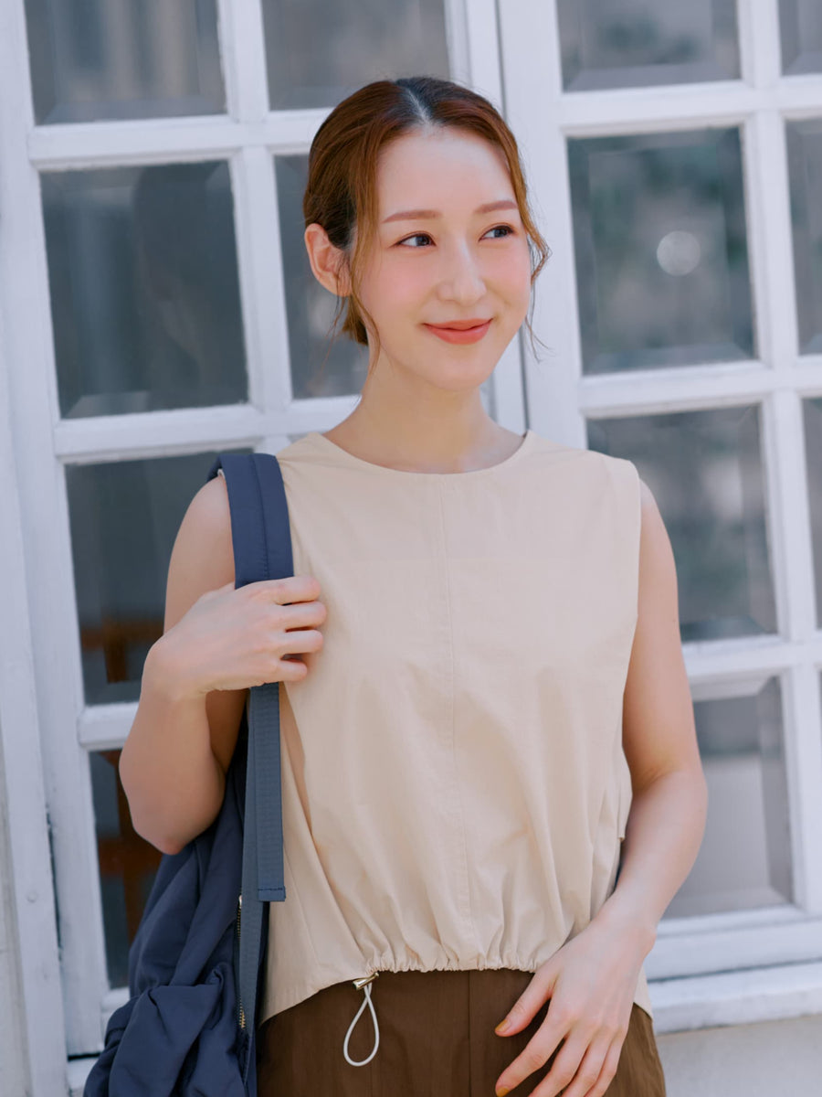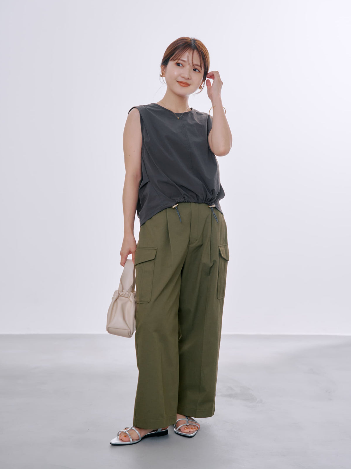 ・裾のドロストを絞るとトレンド感のあるスタイルに、フラットでキレイめな印象にも