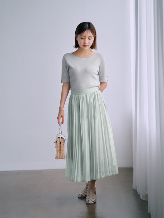 素材はさらりとしているので、真夏でも涼しく着ていただける1枚です。(short着用)