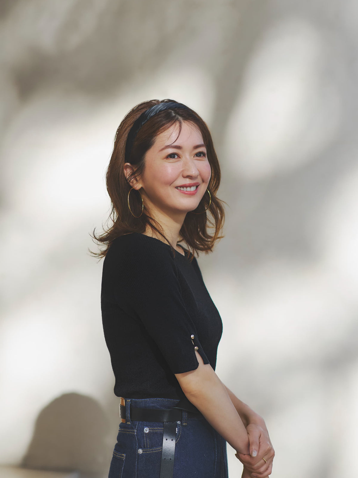 ・華奢見え必至のリブ編み&袖口のスリットで抜け感を演出