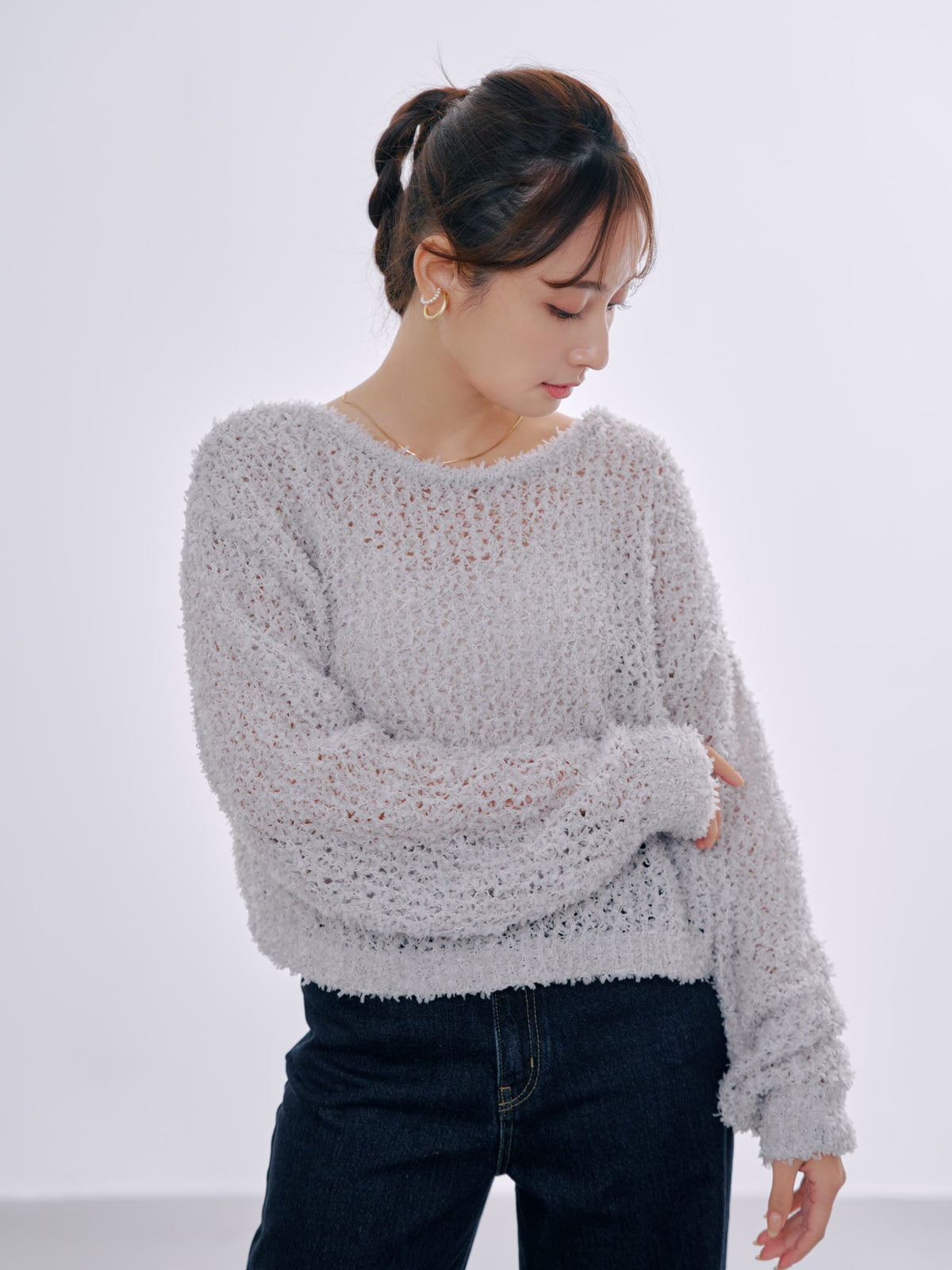 ざっくり感がかわいいメッシュニットは表面感のあるリボンヤーンを使用。