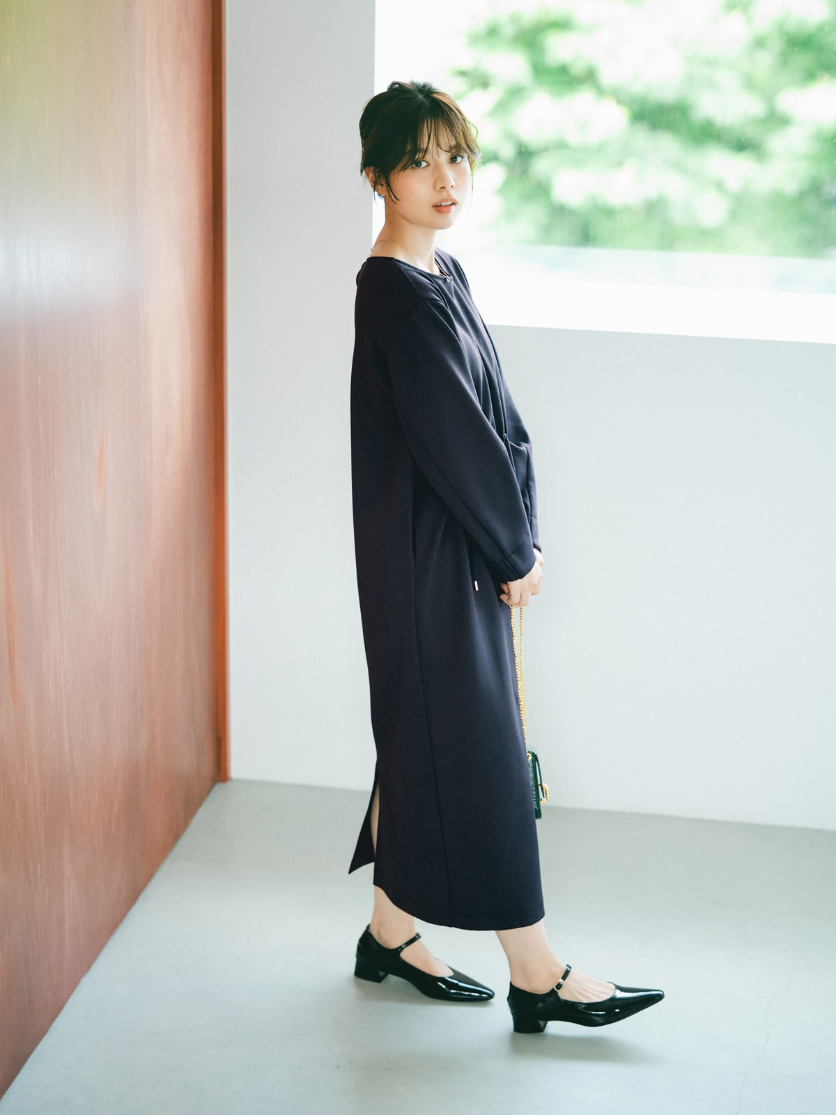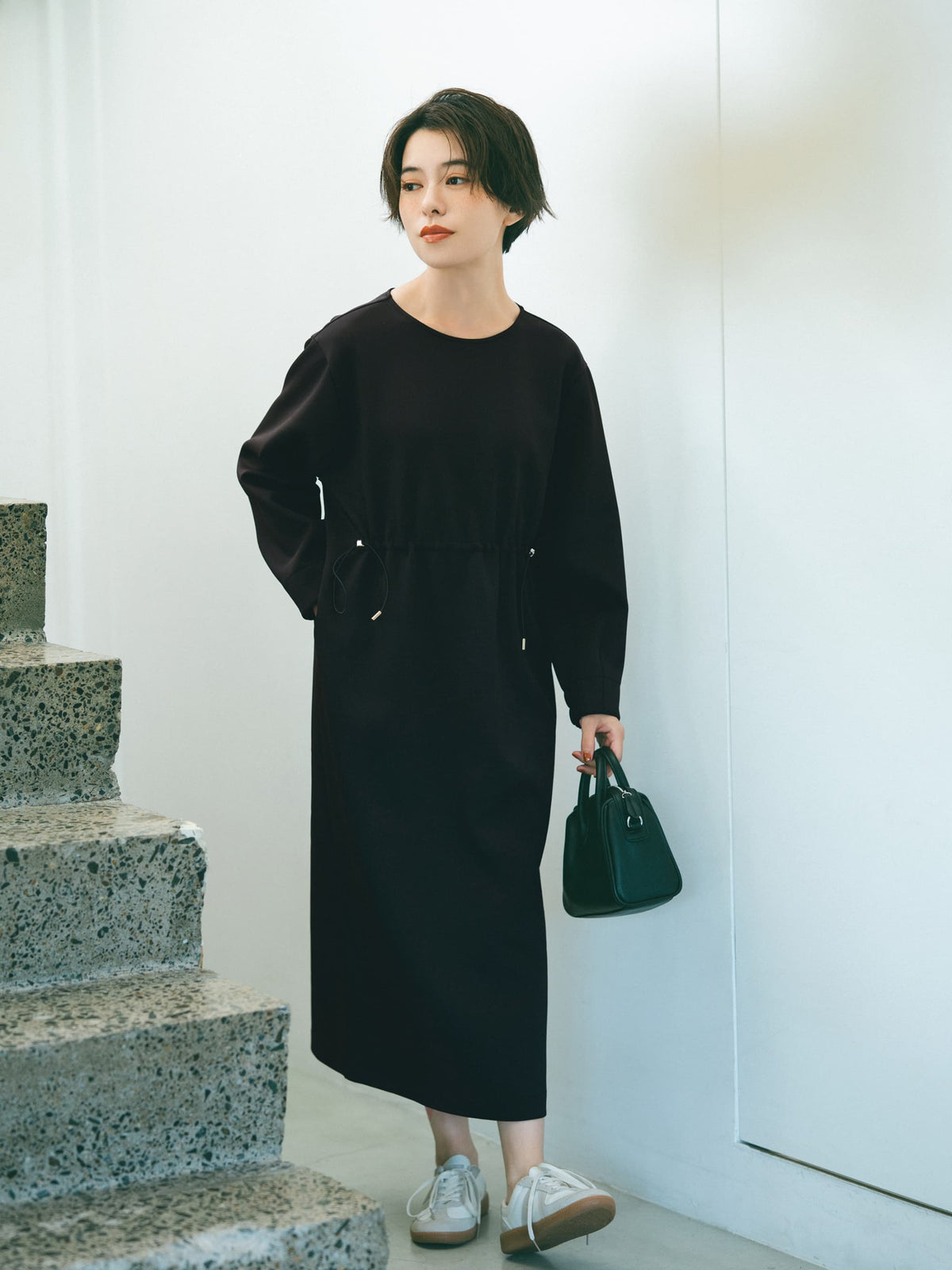 スニーカーを合わせてカジュアルな着こなしから、ショートブーツやヒールを合わせてドレスアップした着こなしまで、様々なシーンに対応してくれる優秀なワンピースです。