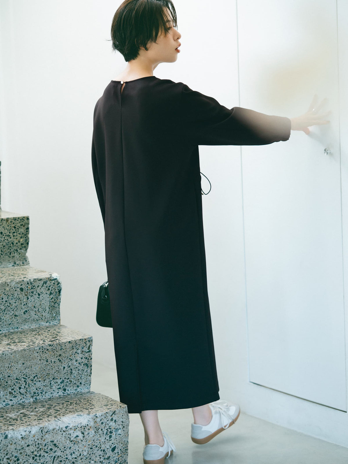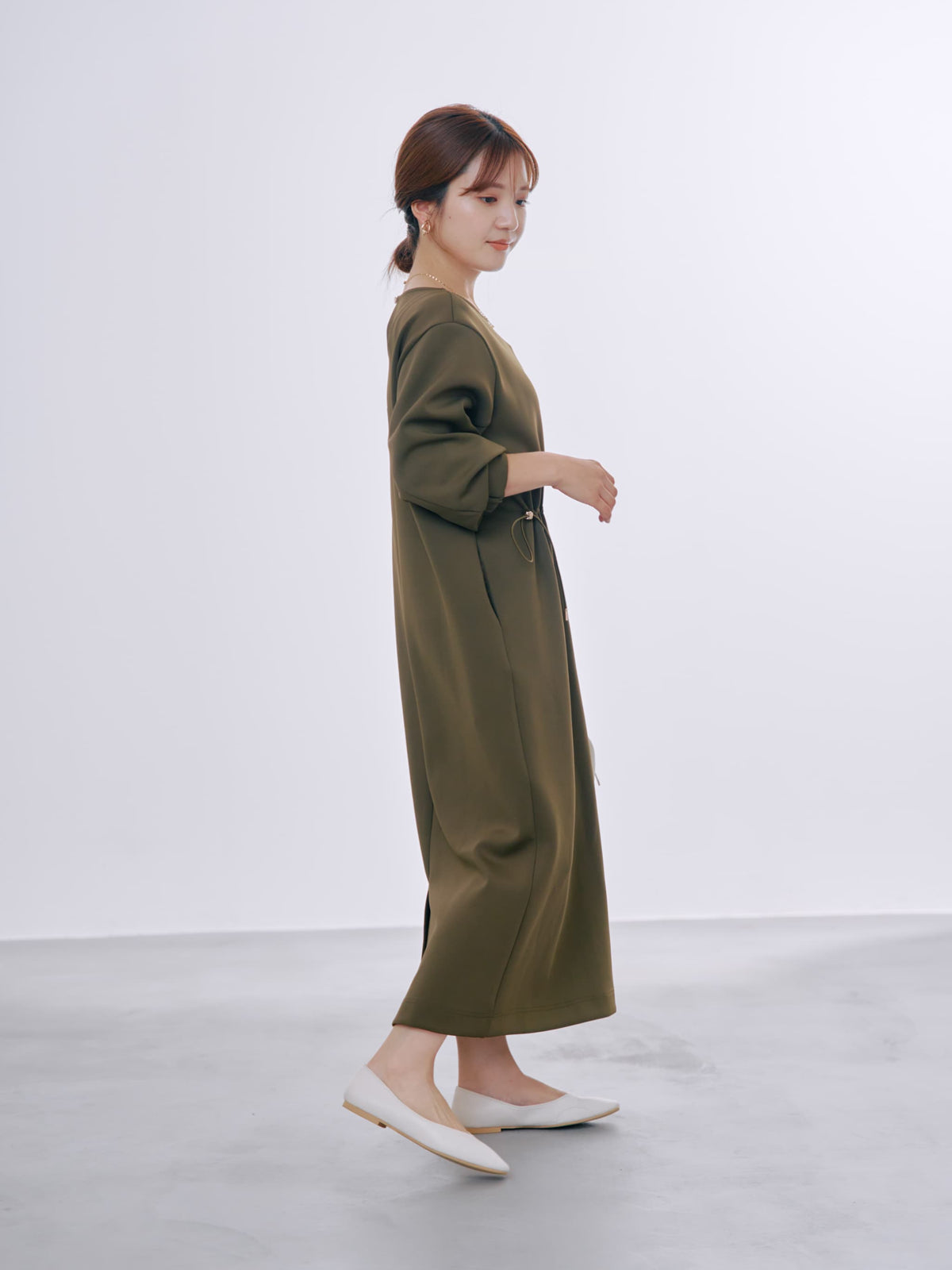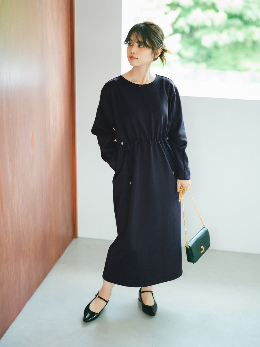 ウエストのドロストデザインがポイントのワンピース。ゆとりがあって体型カバーはもちろん、小柄さんをスタイルアップして見せてくれるのが嬉しいデザインです♡