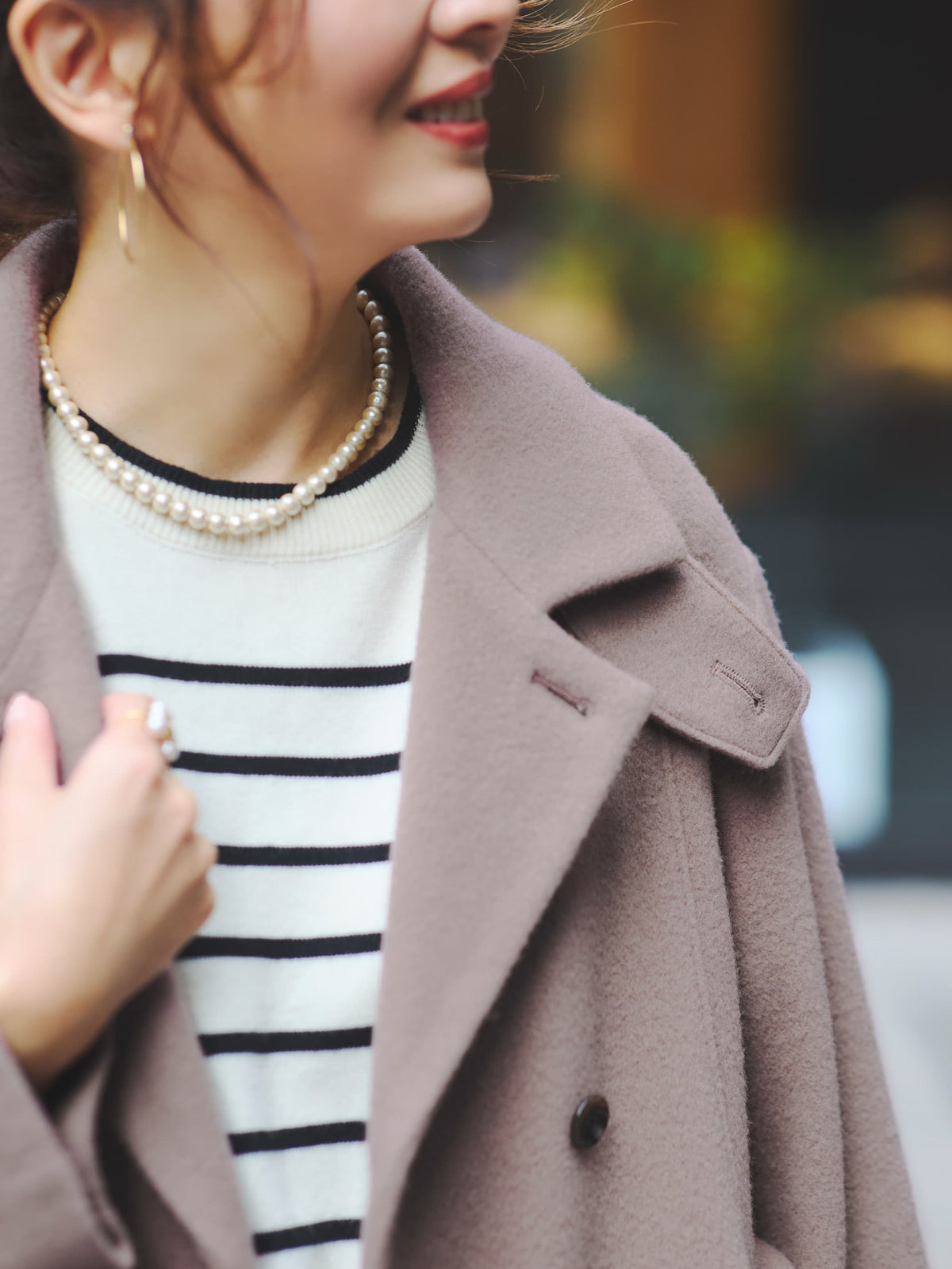 カジュアルな印象が強いボーダーですが、このニットは細めのボーターで、ラインも全面ではないので、スカートコーデとも相性がいいです!