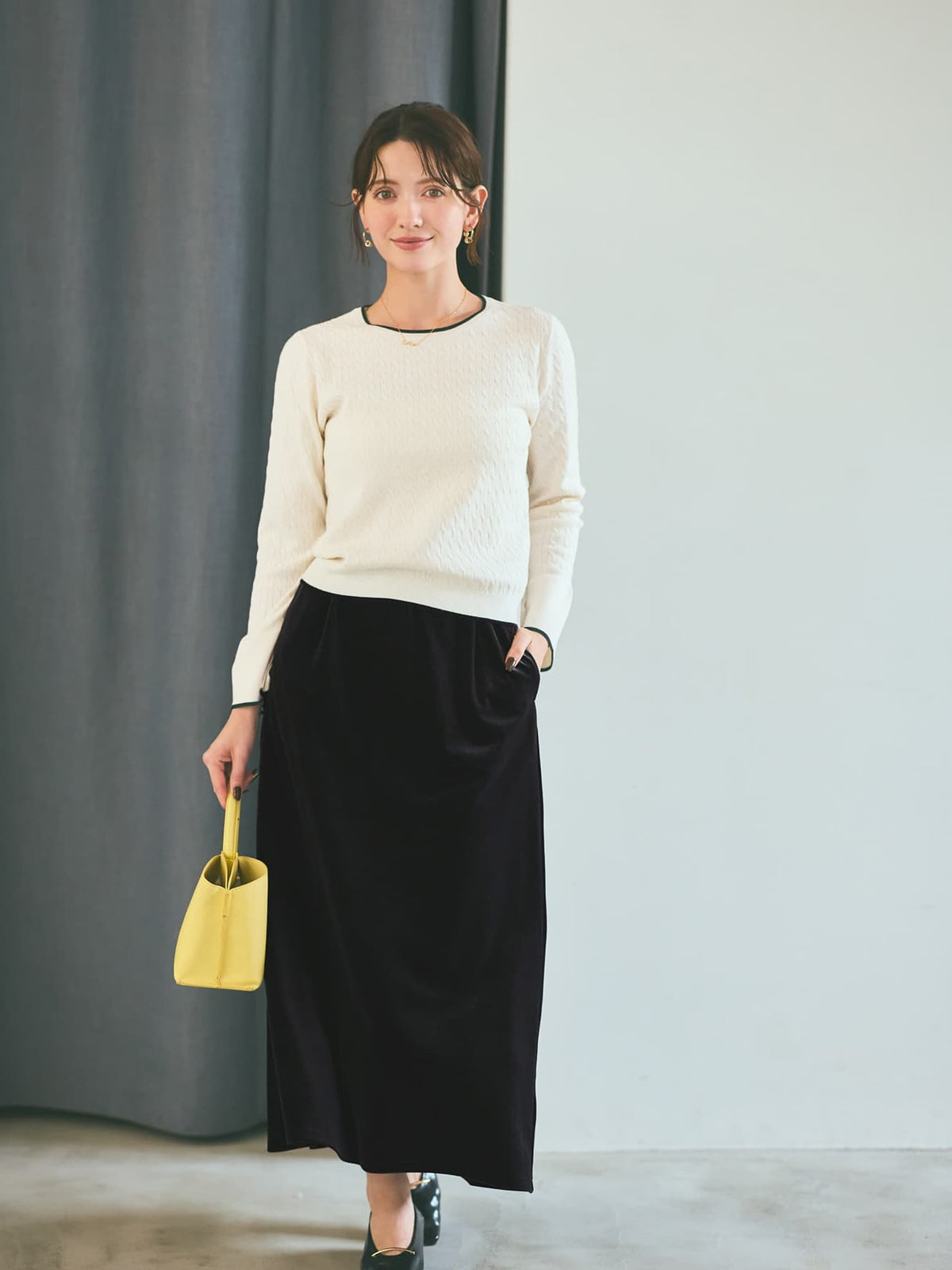 【品のあるベロア素材と揺れ感が着映えする!大人な雰囲気漂う美シルエットスカート】