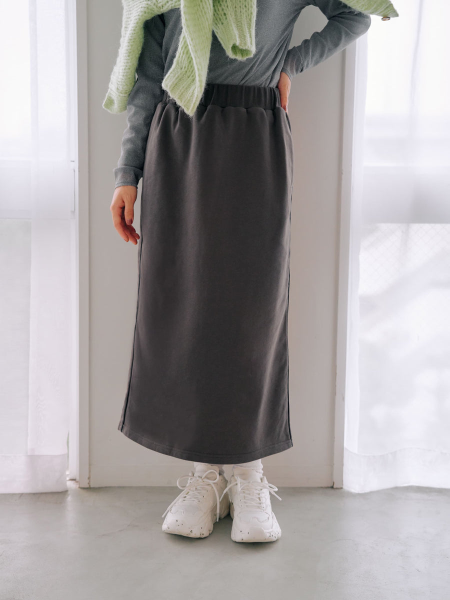 ストレッチ性があり履き心地がよく、バックスリットは深すぎない仕様で冬も暖かく着ていただけるスカート。