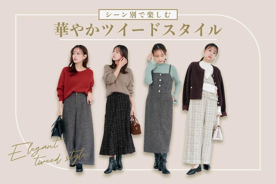 ・ツイードの表面感とシルエットがカジュアルすぎない雰囲気を演出
