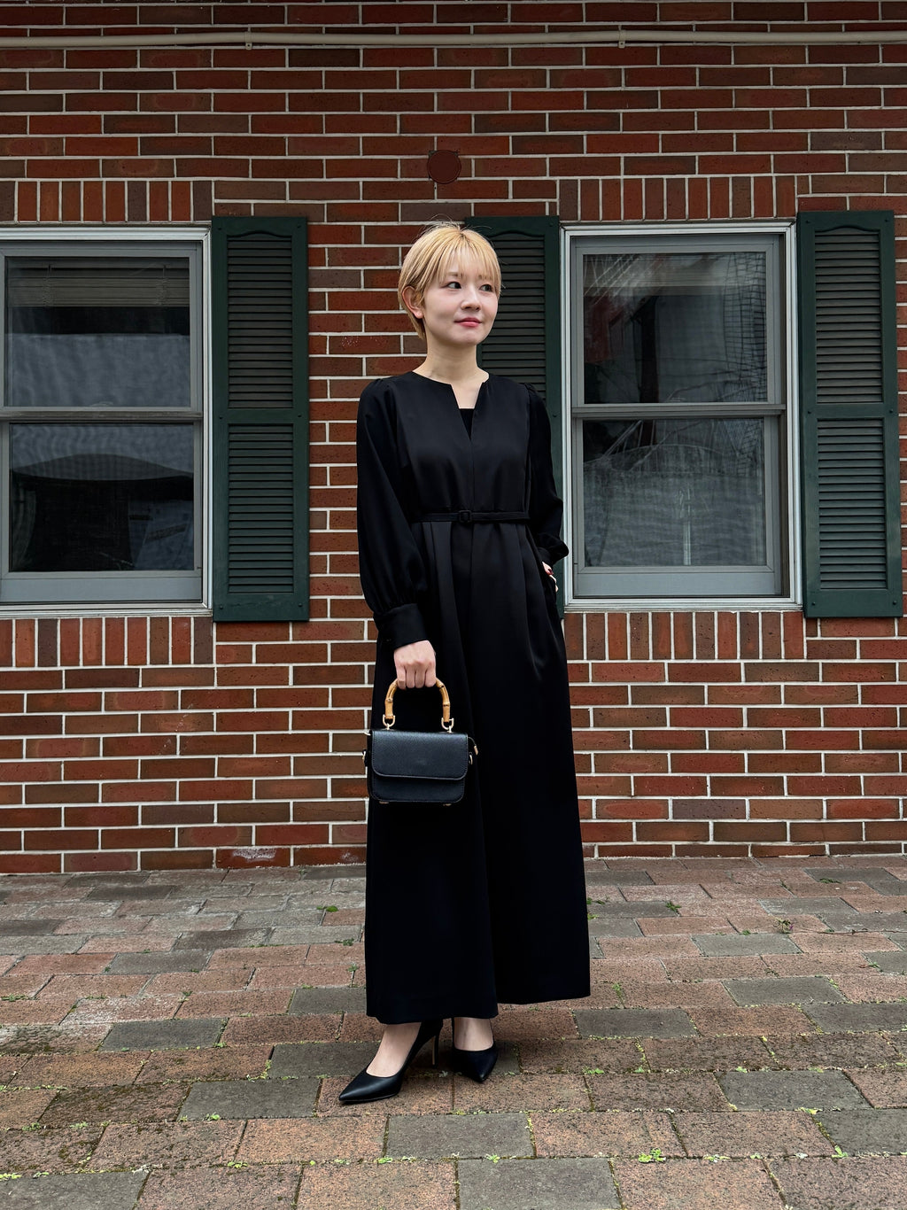 喪服として一枚はブラックフォーマルを持っていたくて購入。骨ストなのでワンピースの方のフリルは太って見えるかなと思い、結構勇気のいる選択でしたが、オールインタイプに挑戦してみました。体型を拾いにくい形で、寸胴なのはそりゃわかりますが(笑)、デブにも見えず、すっきり着られます。襟のカットもスッキリして見えてバランス◎です。同じ素材のノーカラーのジャケットが在庫切れで買えないのが悲しい。セットで買わないとお葬式などで着用しにくいので、こちらも受注生産してほしいです。お願いします。