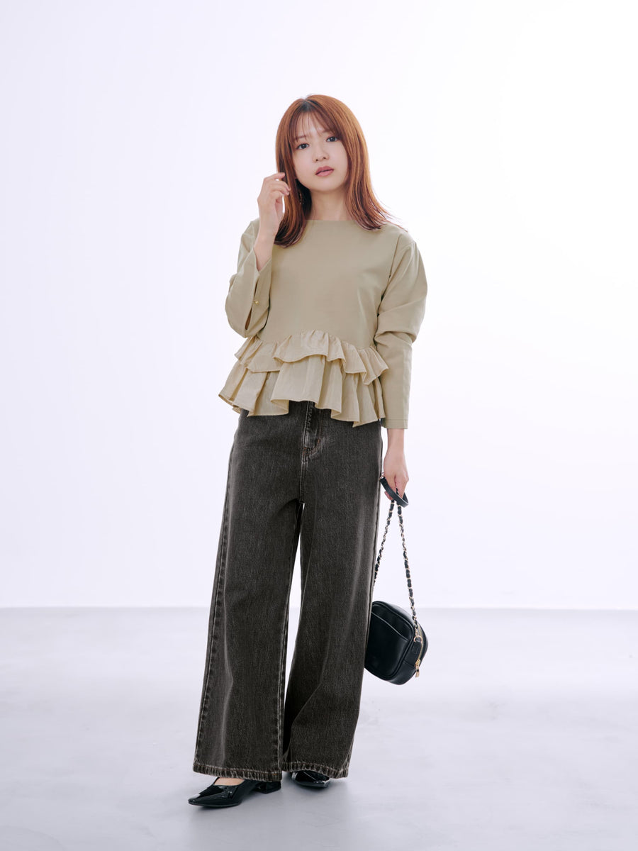 カットソー、Tシャツ合わせはもちろん、ブラウスまで、トップスを選ばずコーディネートしていただけます。