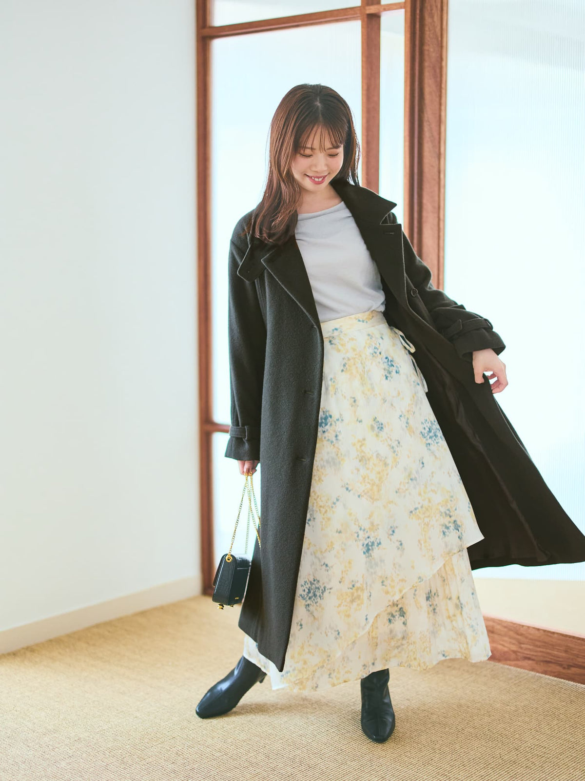 【COHINAオリジナルのフラワープリントがポイント♡シーズンムード高まるラップ風アシンメトリースカート】
