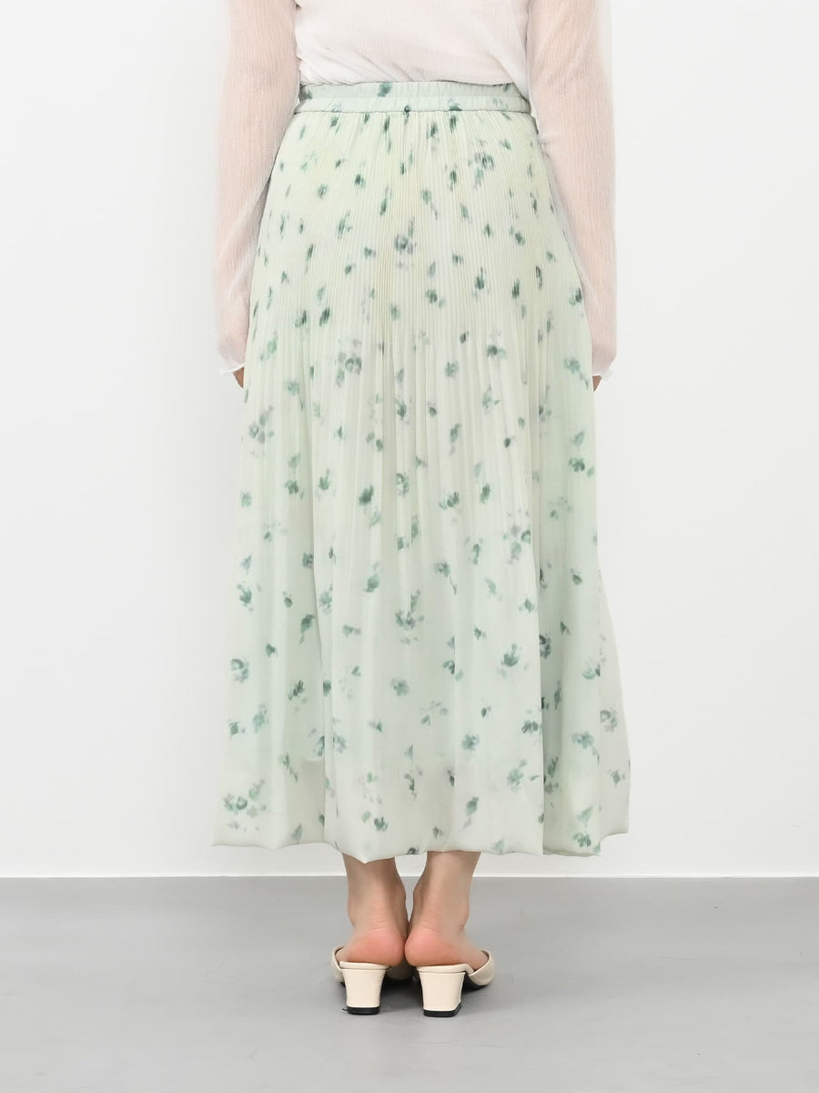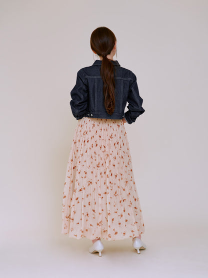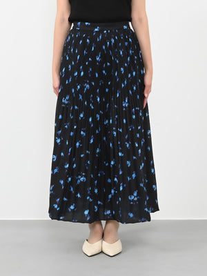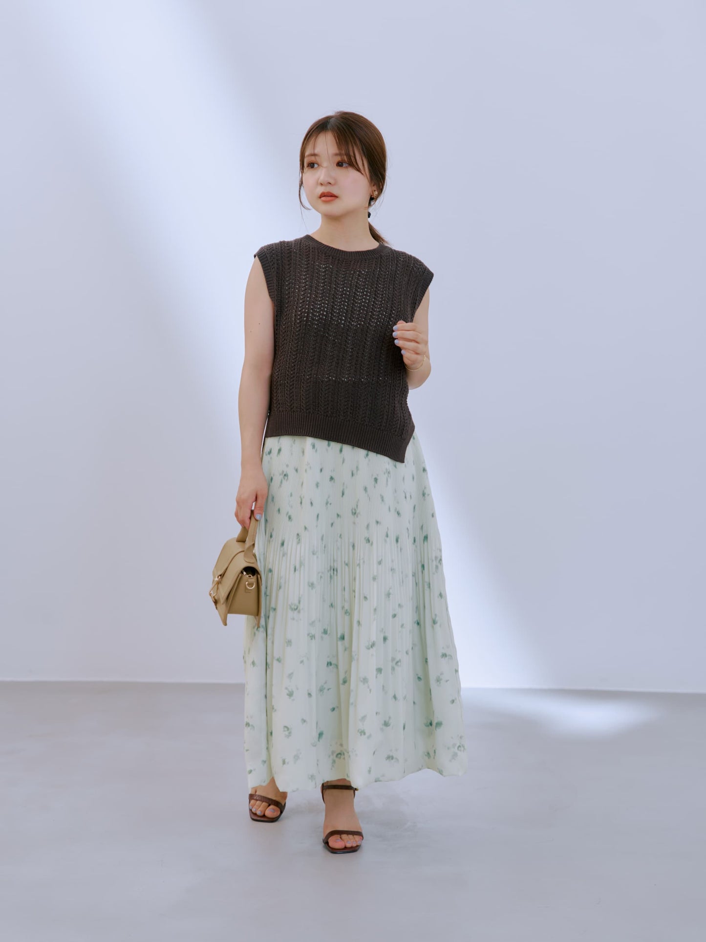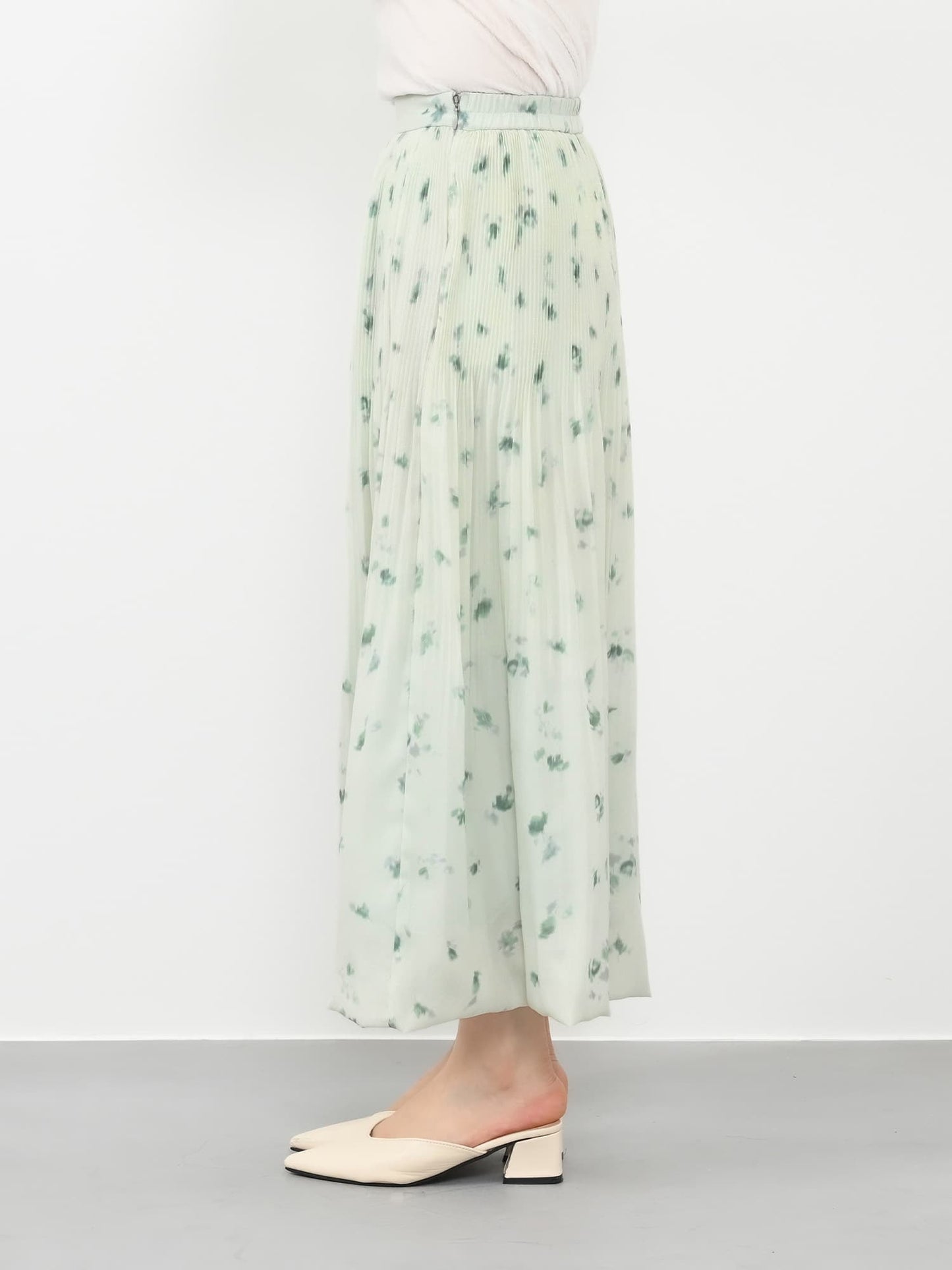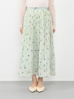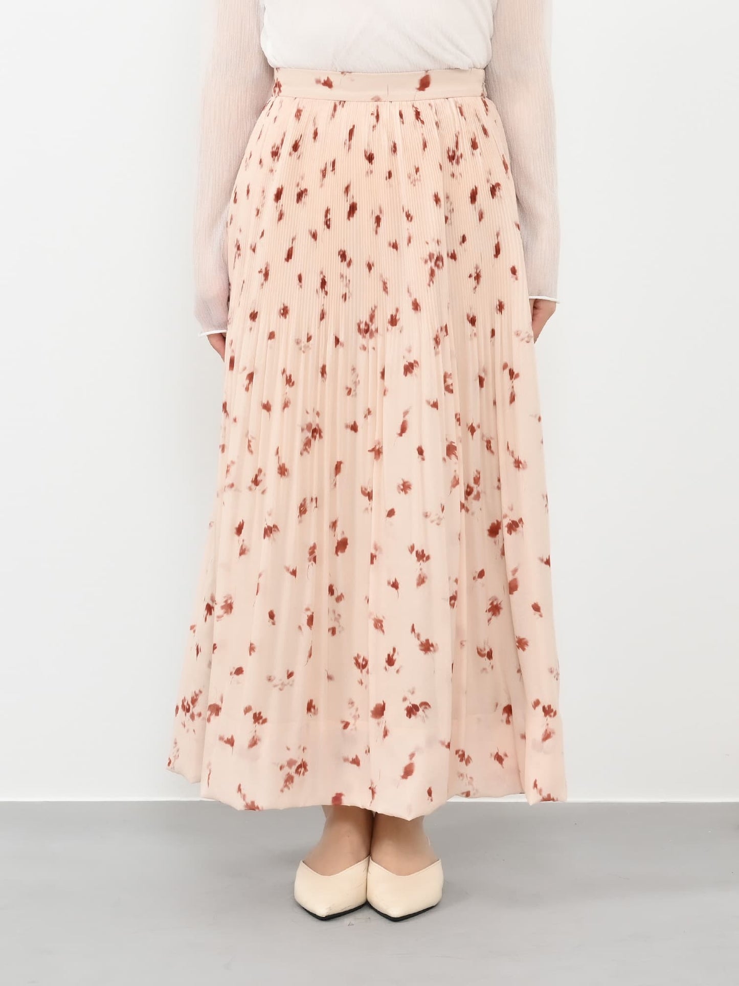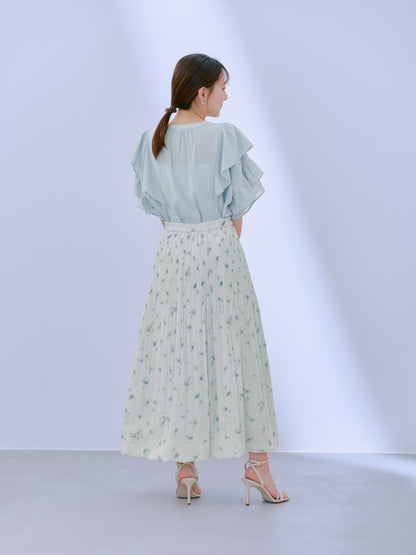 儚げなシャドーフラワープリントが上品な印象に仕上げてくれます。トレンド感のあるバルーンスカートを小柄さんに合わせた程良いボリュームに仕上げました。裾に向かってプリーツの幅を変えることでより動きのある表情に魅せてくれます。