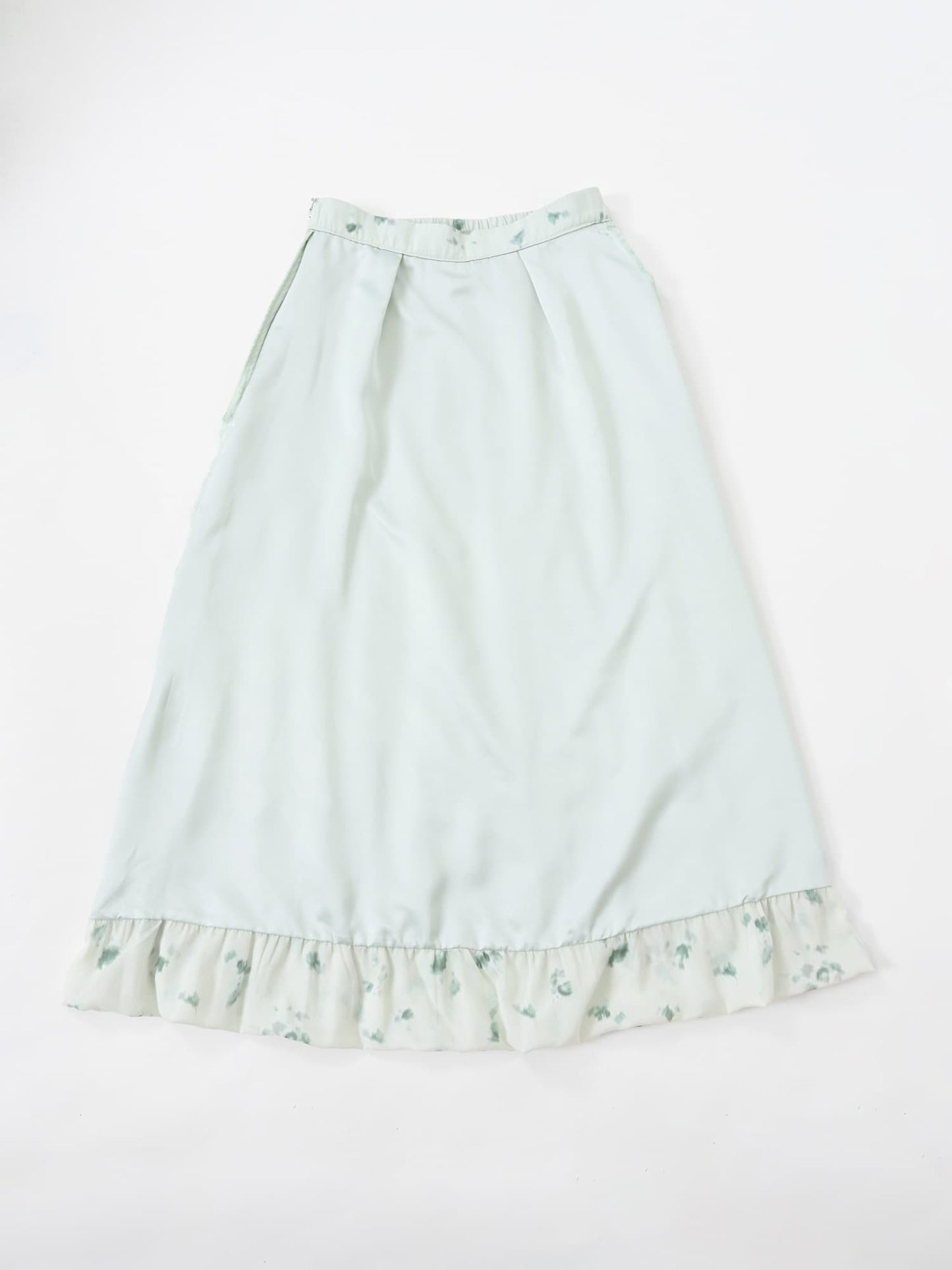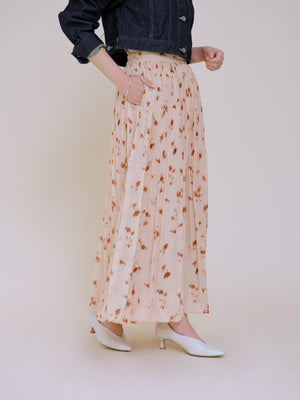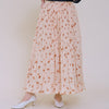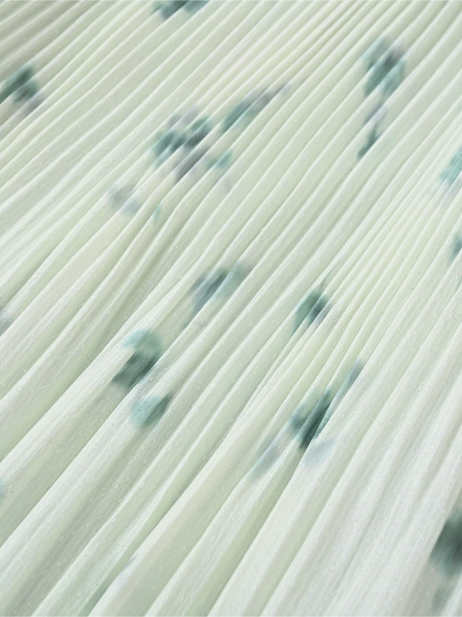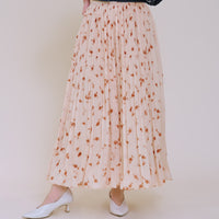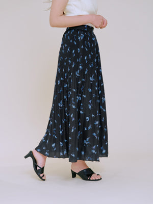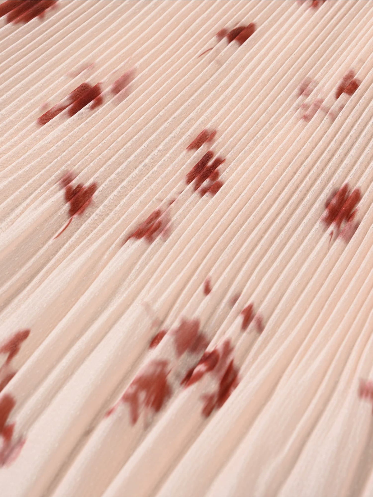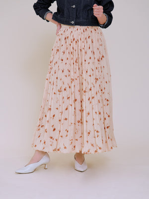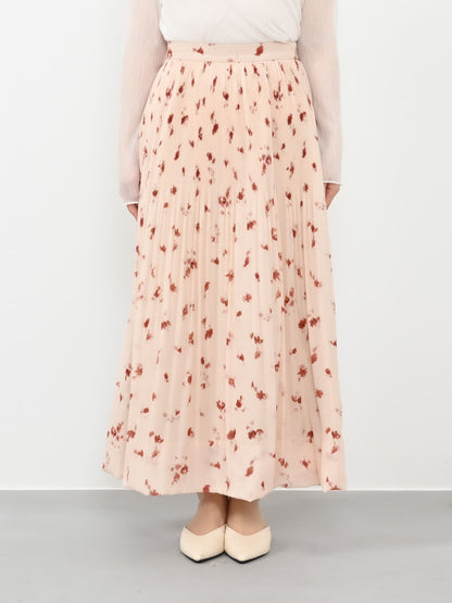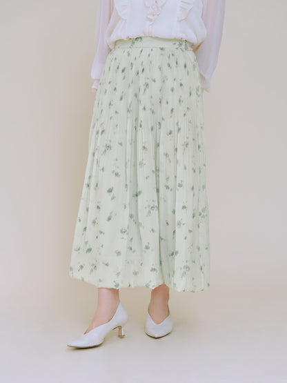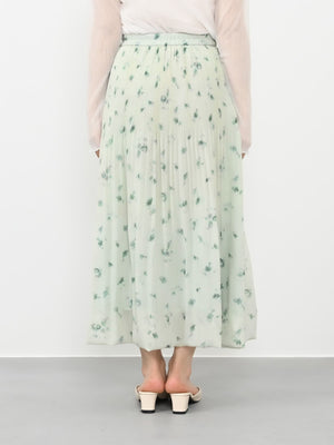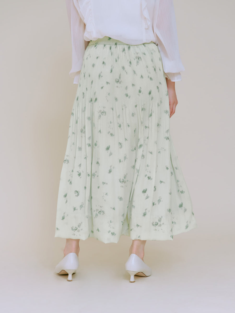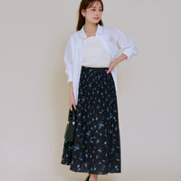 儚げなシャドーフラワープリントが上品な印象に仕上げてくれます。トレンド感のあるバルーンスカートを小柄さんに合わせた程良いボリュームに仕上げました。裾に向かってプリーツの幅を変えることでより動きのある表情に魅せてくれます。