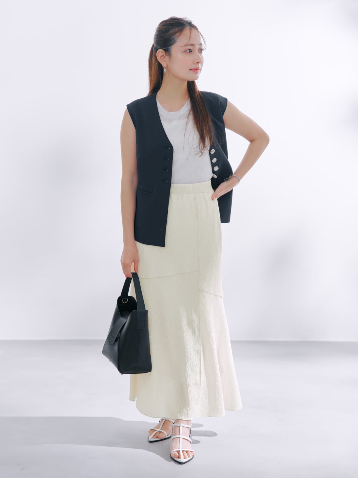 ・レイヤードはもちろん、1枚でノースリーブとしての着用や同素材のパンツとセットアップの着用もおすすめ