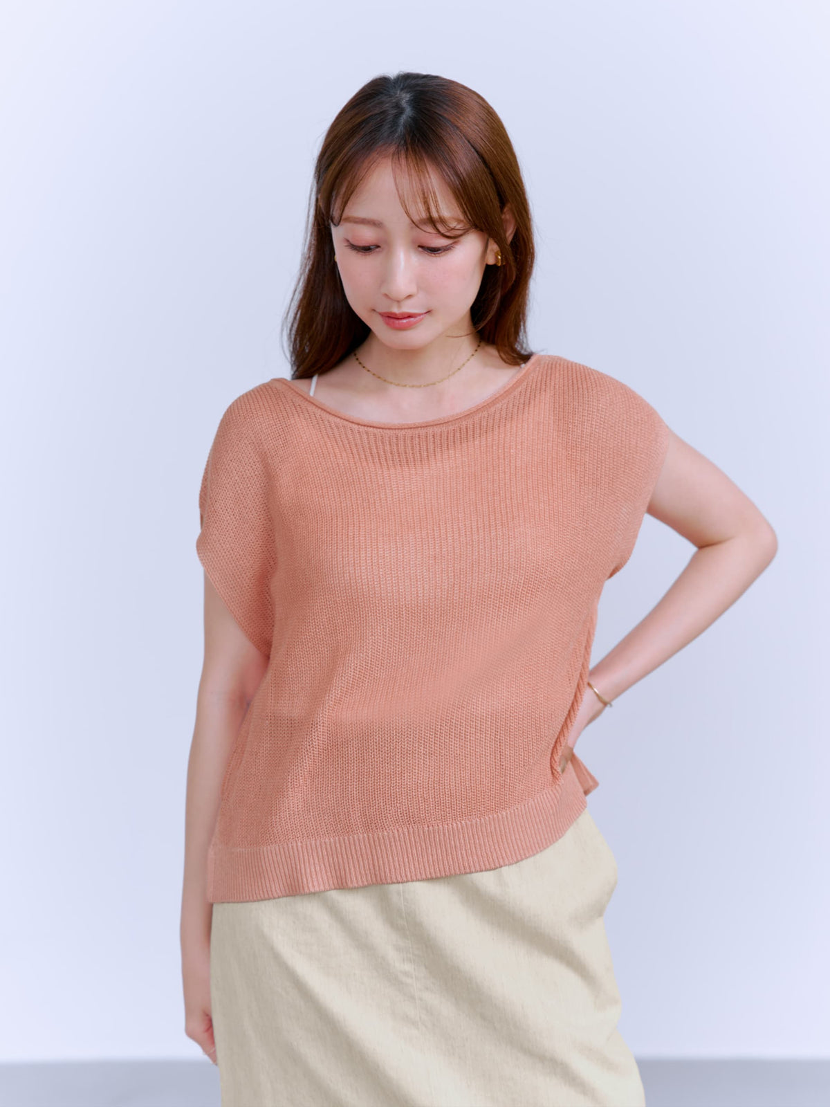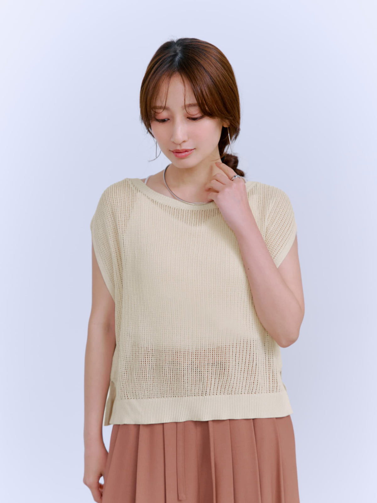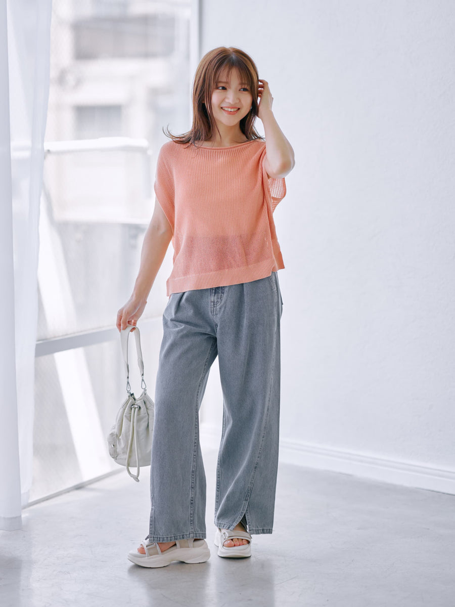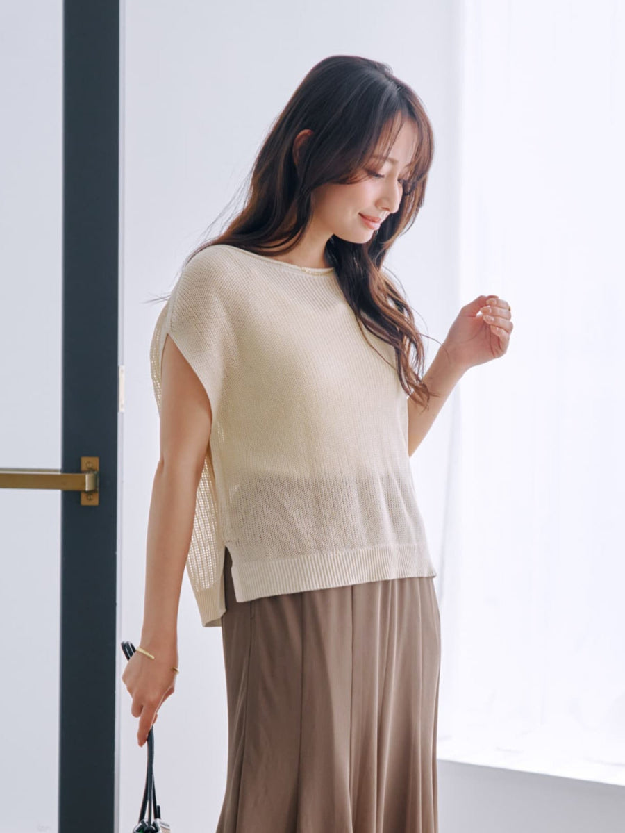 【涼しげなメッシュ編みの素材感が魅力!前後2wayサマーニット】