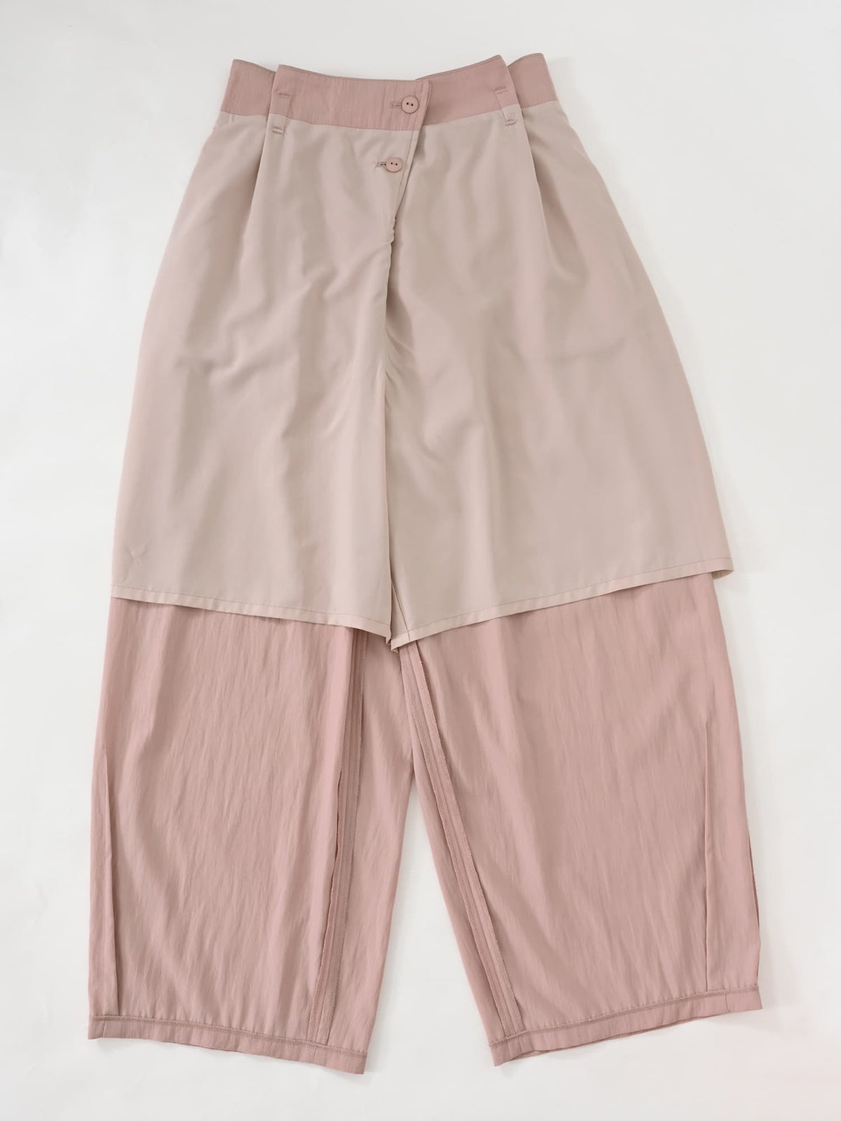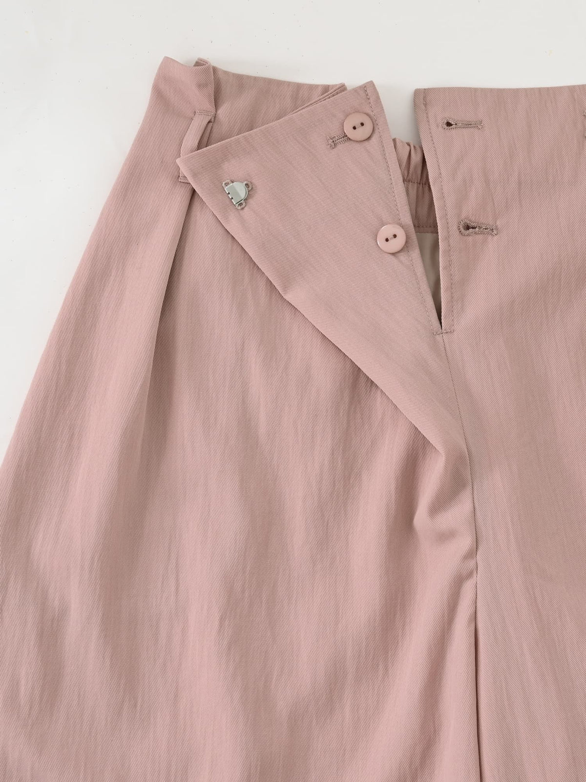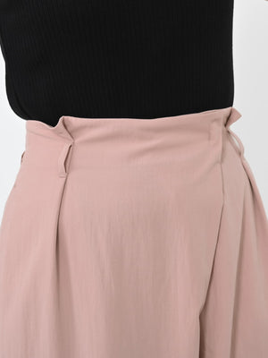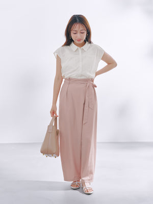 ラップパンツ風のアシンメトリーなフロントデザインがポイント。