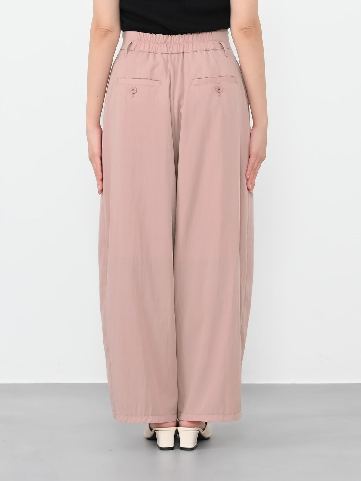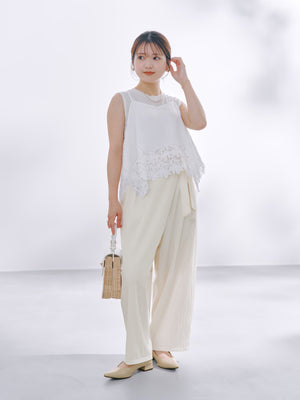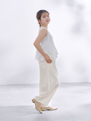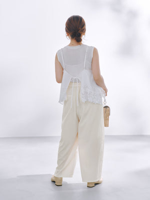 ポリエステルナイロンの軽やかな生地を使用。着用感も軽やかでストレスフリーな履き心地です。適度にワッシャー感のあるラフな風合いが魅力。シワが気になりにくいのも嬉しいポイントです。