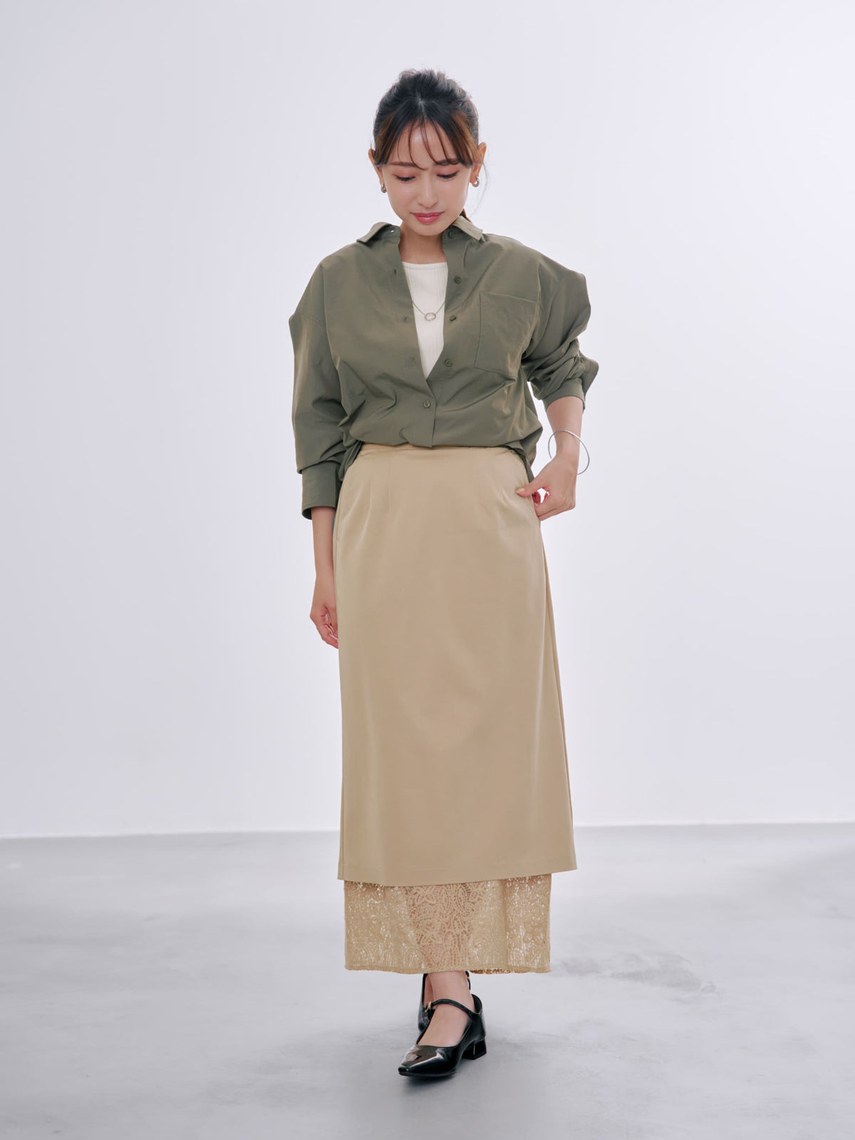 綺麗めにもカジュアルスタイルにも万能に使える1枚は持っておきたいアイテム。