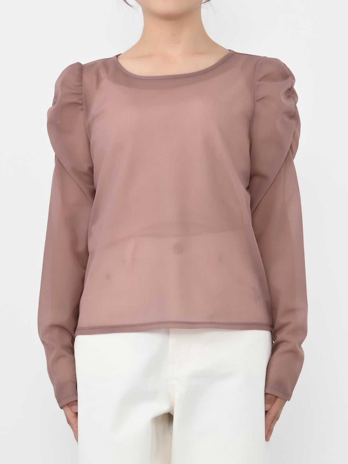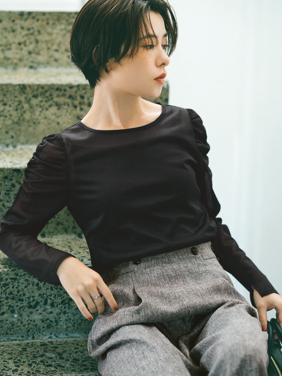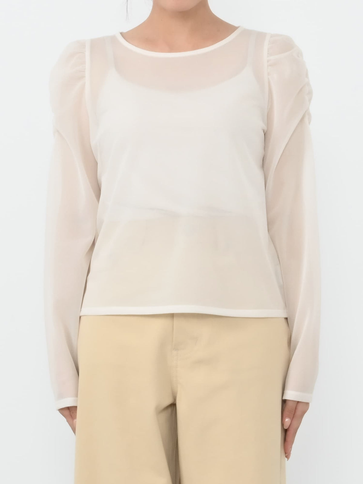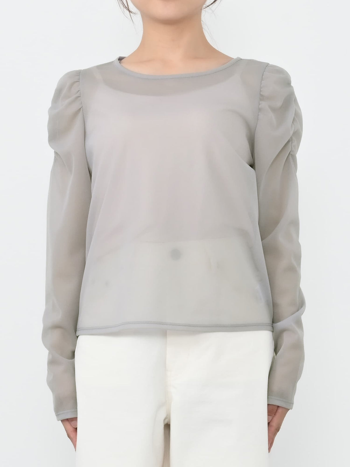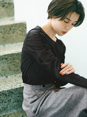 軽やかに纏う、シアー素材の華奢見えギャザースリーブトップス