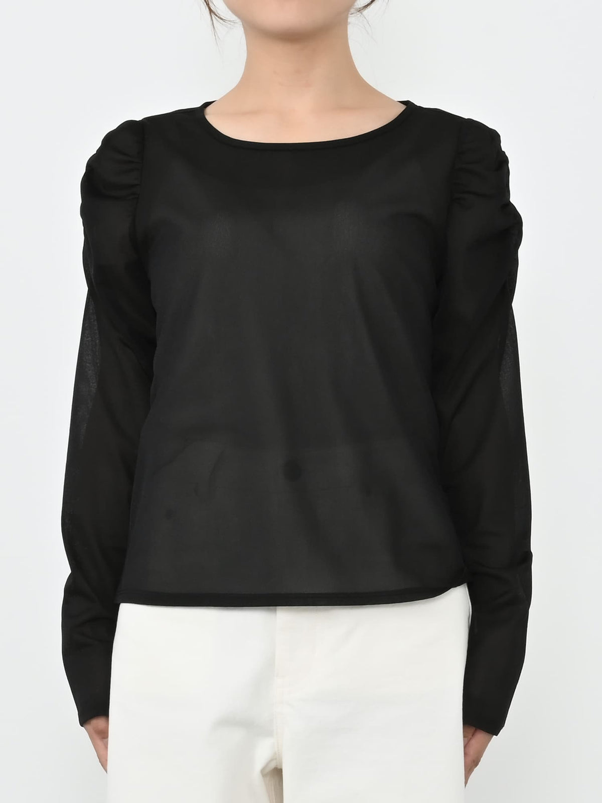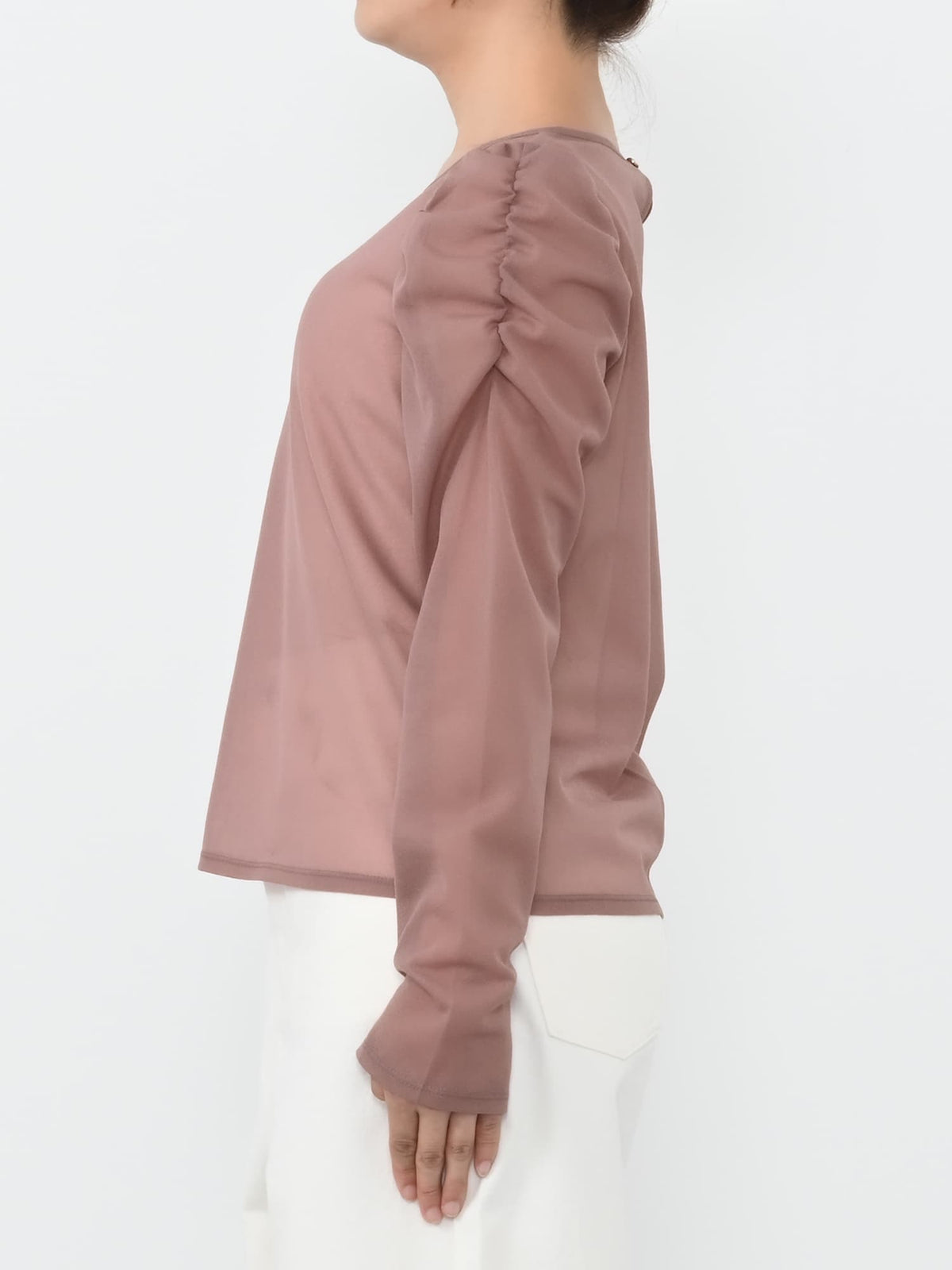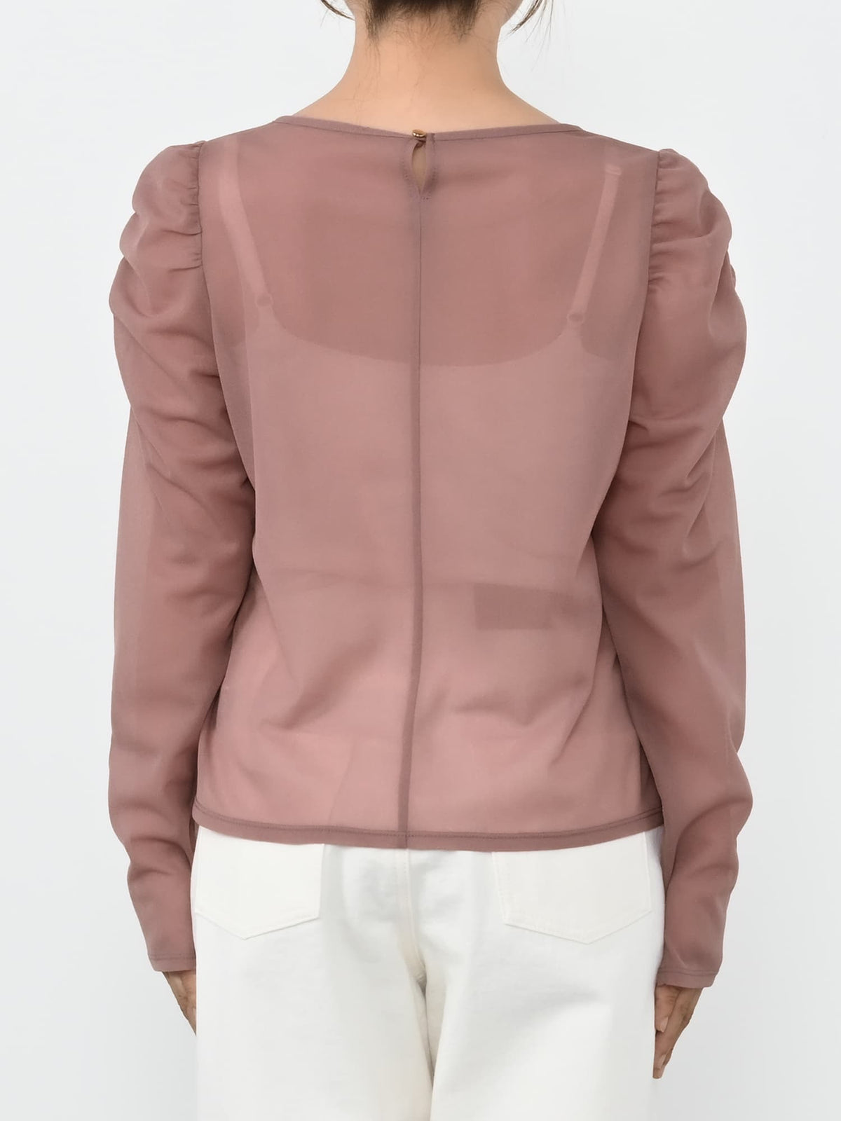 軽やかに纏う、シアー素材の華奢見えギャザースリーブトップス