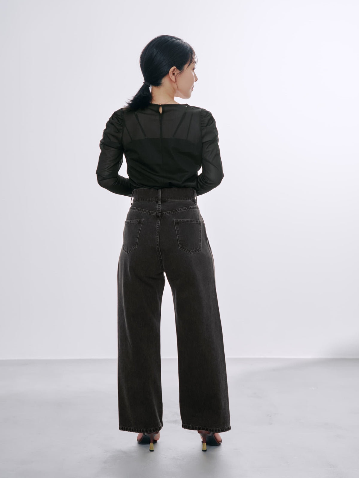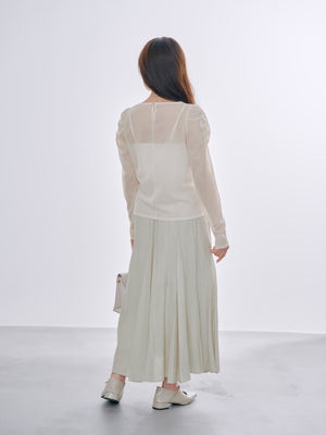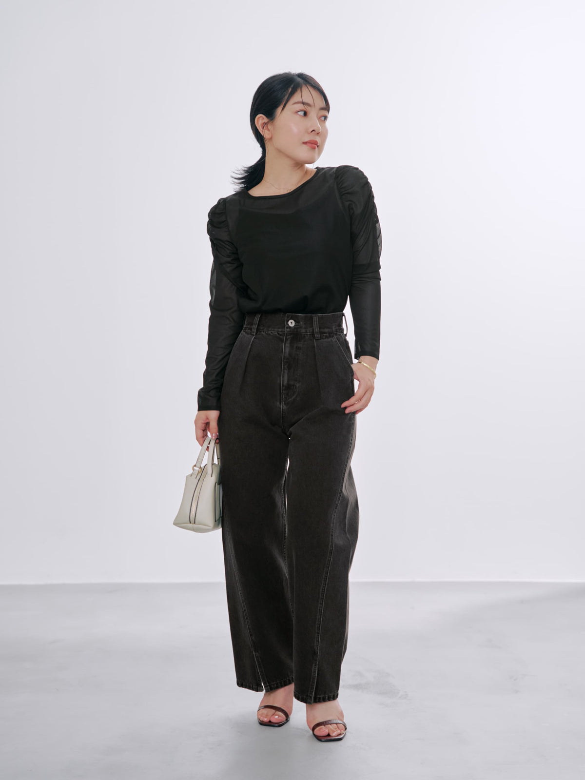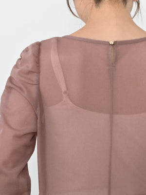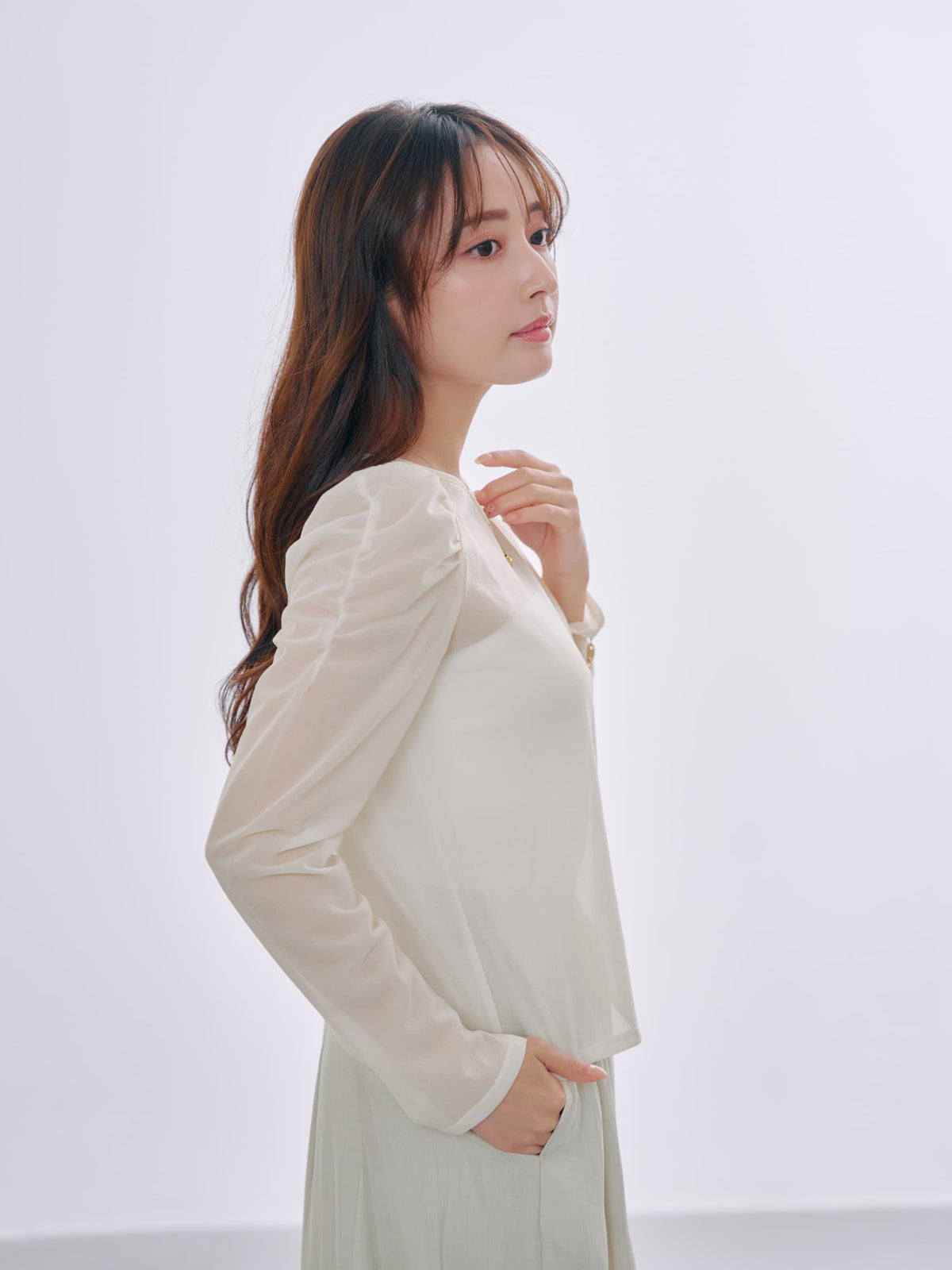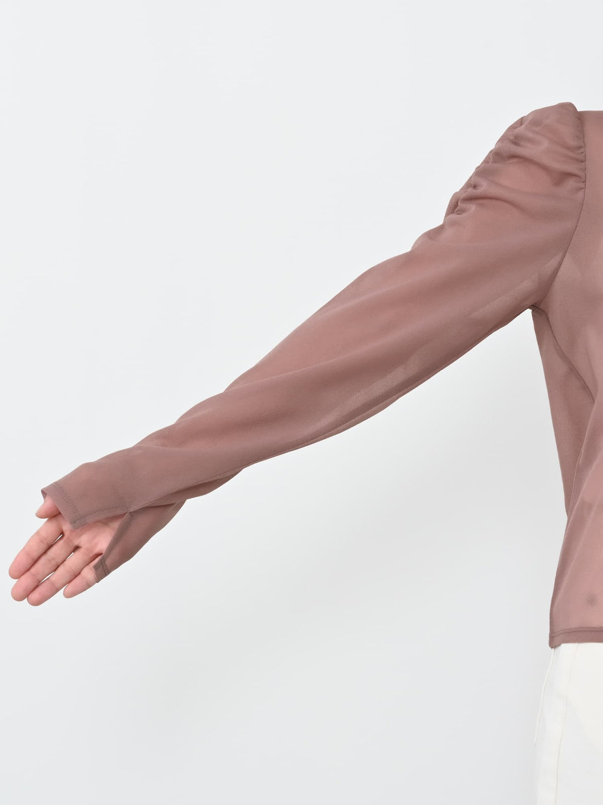 軽やかに纏う、シアー素材の華奢見えギャザースリーブトップス