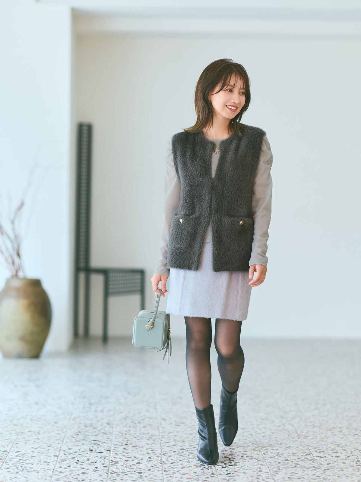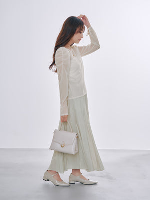 シアー素材の適度な肌見せとボリュームを抑えたギャザー感が大人可愛い1枚。ぴったりとし過ぎない絶妙なサイジングで身体のラインを拾いにくく、華奢見えを叶えてくれます。