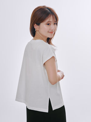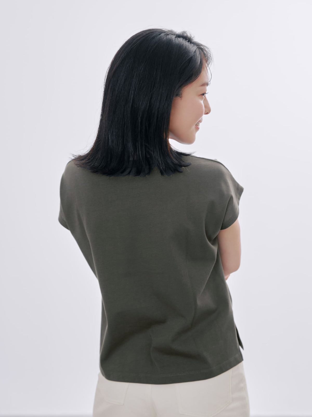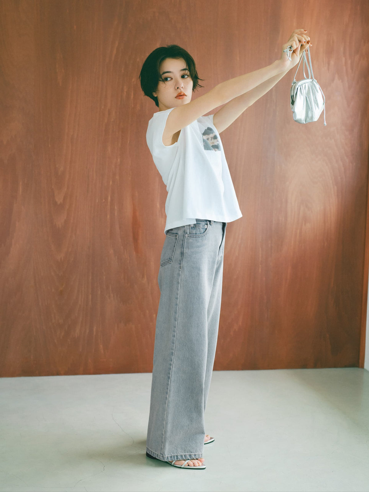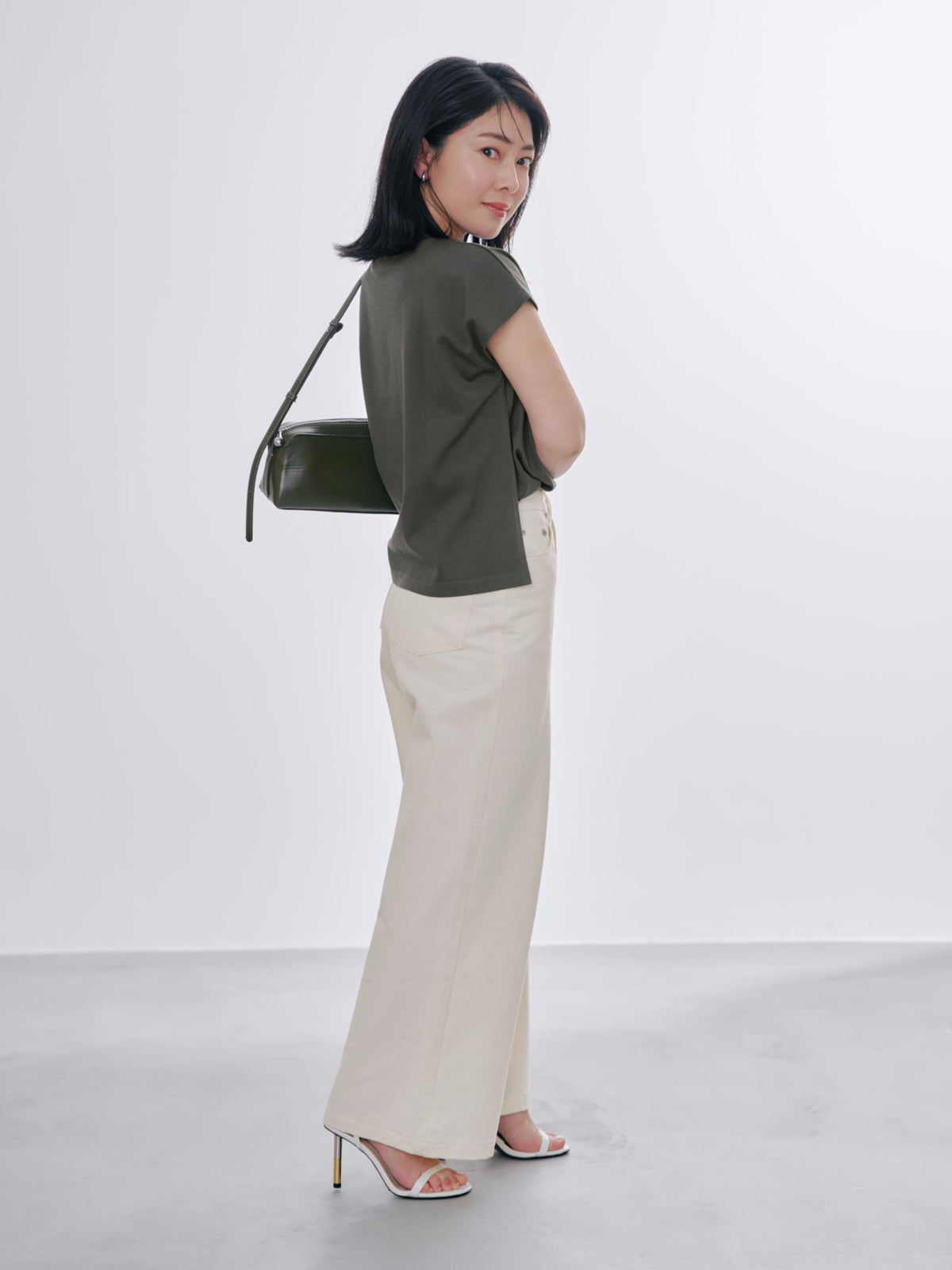 着丈は骨盤あたりですっきりと着用できるのもポイント。夏は1枚で、秋口はジャケットのインナーなど幅広く合わせていただけます。