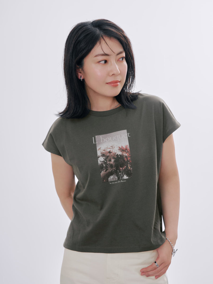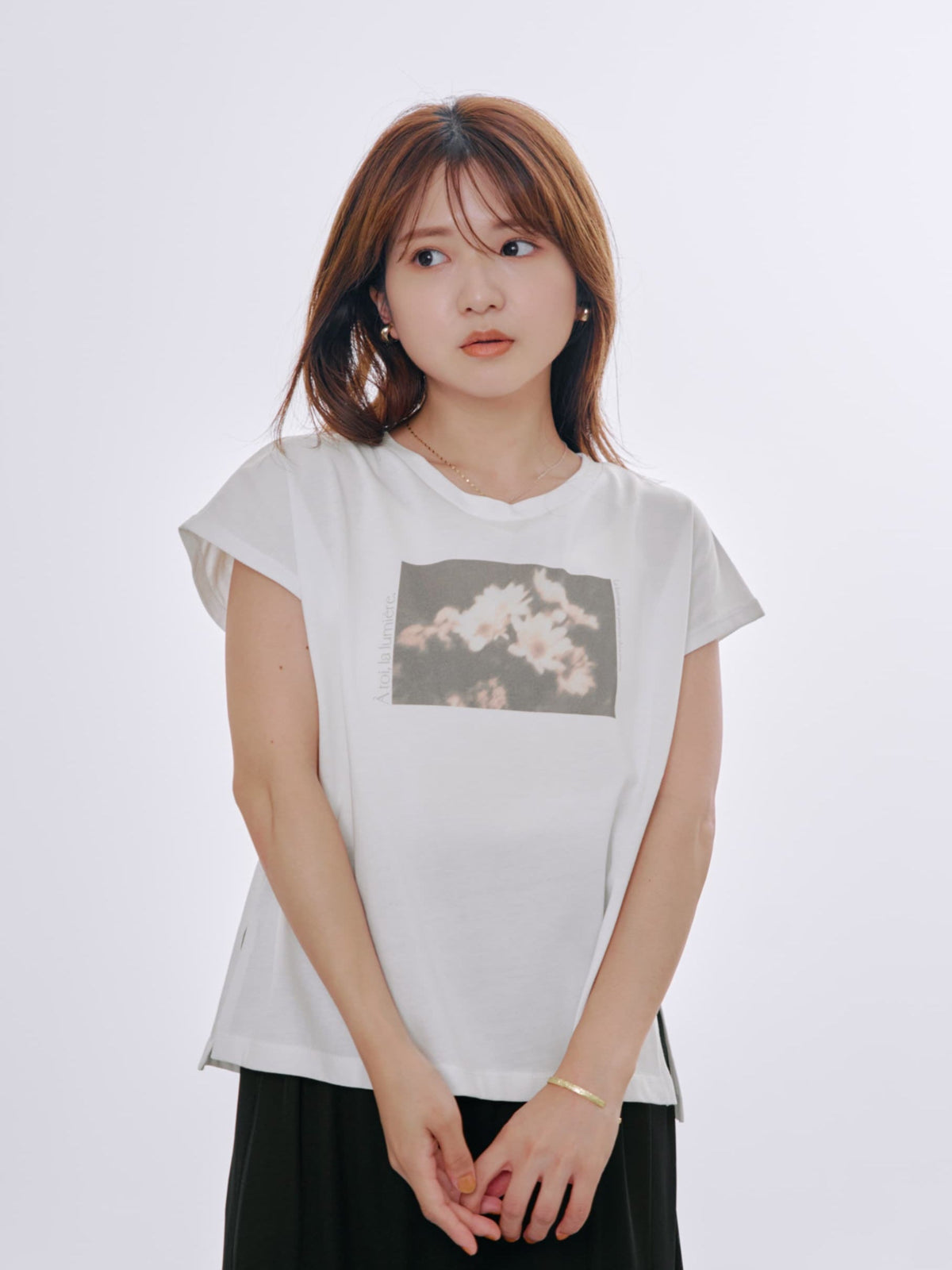ニュアンスのあるフラワーグラフィックがトレンド感溢れるプリントTシャツ。