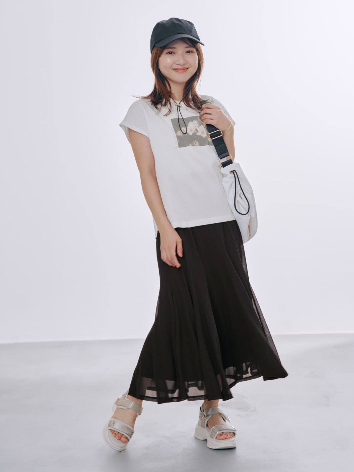 カジュアルなボトム合わせはもちろんのこと、タイトスカートやストラップサンダルと合わせて大人っぽいスタイリングもおすすめです。