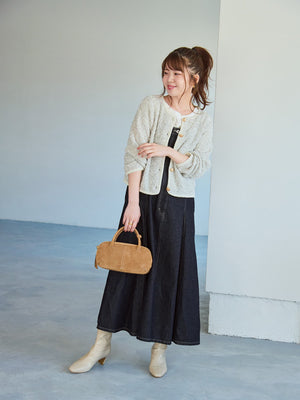 Tシャツやデニムなどカジュアルなスタイリングの外しとしても着回していただけます。ハイゲージのニットやブラウスをインナーに、きれいめなボトムスと合わせてオンスタイルにも◎