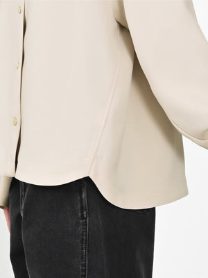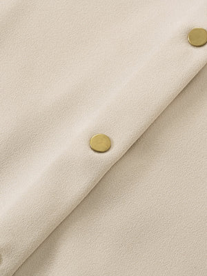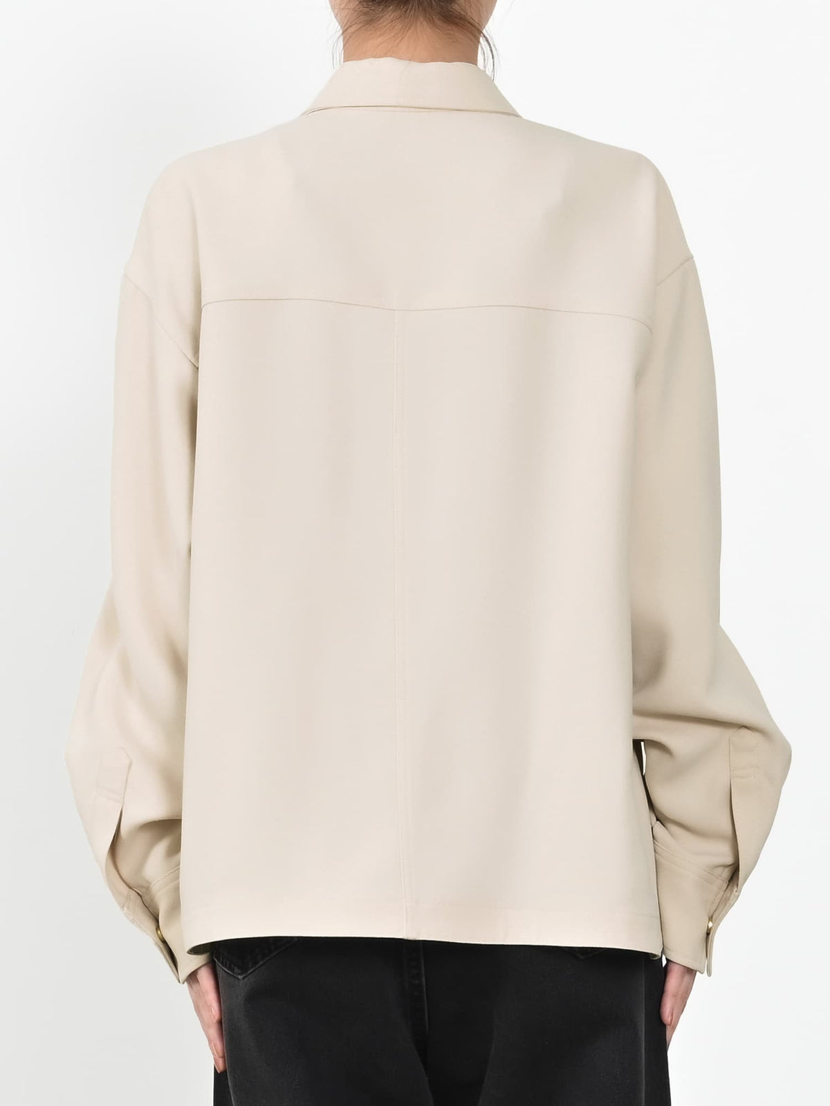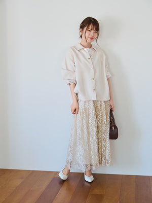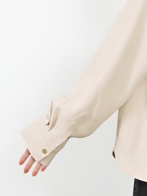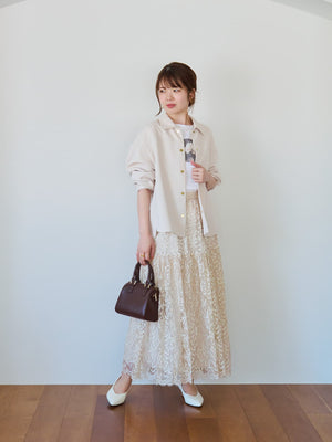 きらりと光るライトゴールドのドットボタンでアクセントをプラスしています。胸ポケットは目線アップ効果も◎。いつもの私をちょっと格上げしてくれる、COHINAらしいシャツジャケットです。