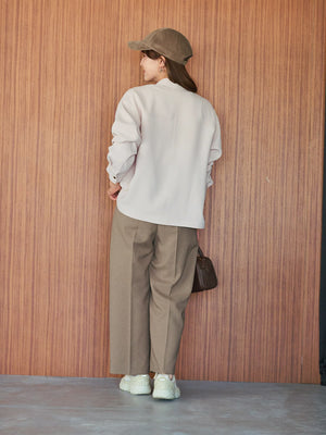 トレンド感とこなれ感を両立したゆったりとしたシルエットのデザインジャケット。小柄さん設計のサイジングや計算されたシルエットでバランス良く着こなせる1枚。