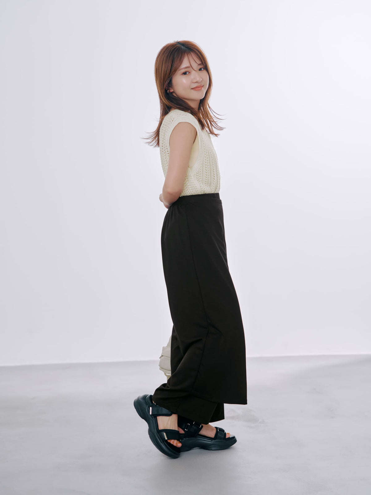 シンプルなカットソーから、ゆるっとしたスウェット合わせもおすすめ。先のシーズンも、コンパクトニットやショートブーツ合わせで決まります。