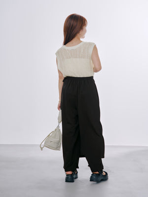 楽ちんな履き心地でありながら、ラップデザインで鮮度あるイージーパンツ。