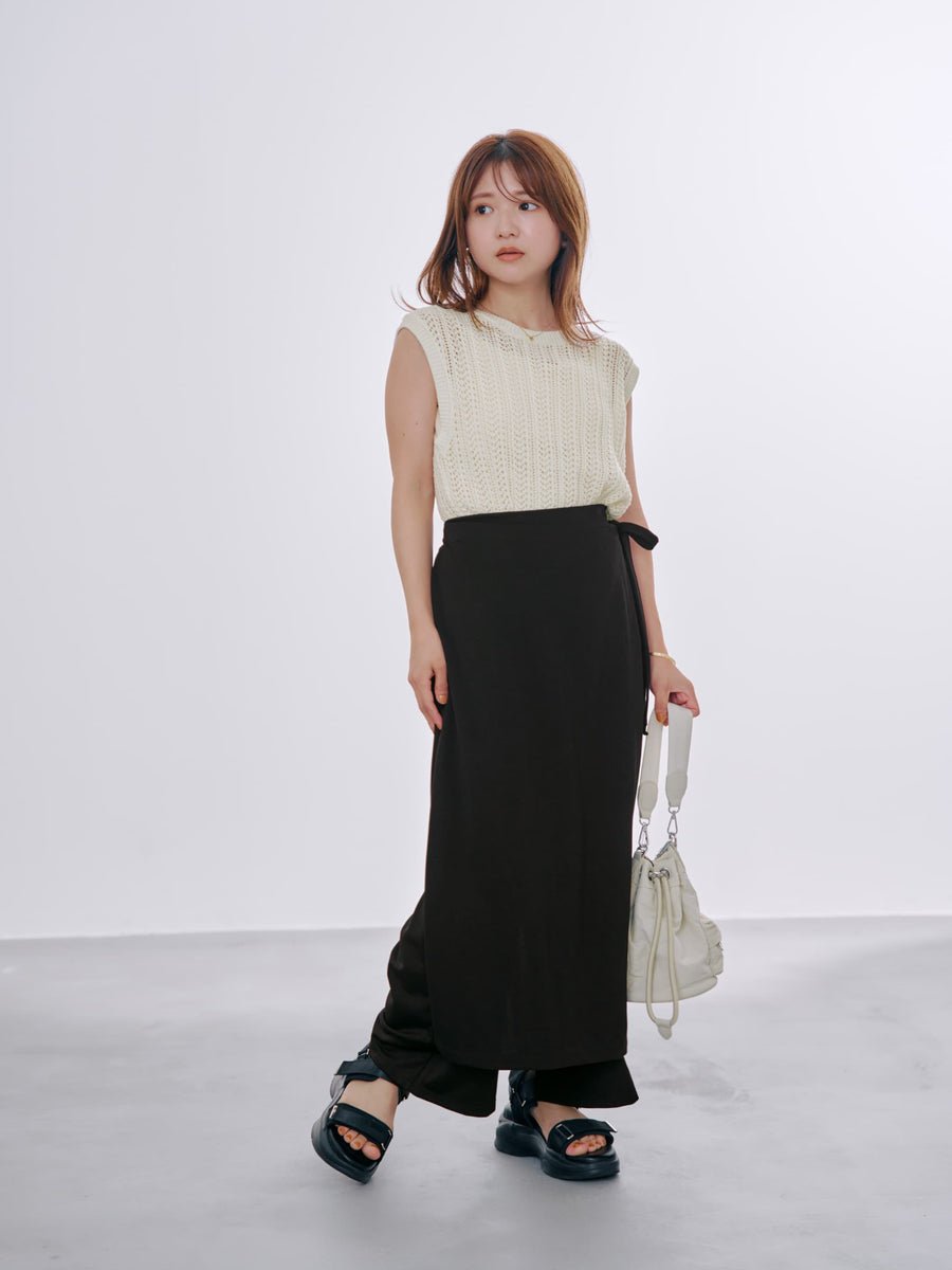 旬のラップデザインで差をつける♡楽して体型カバーも叶うイージーパンツ