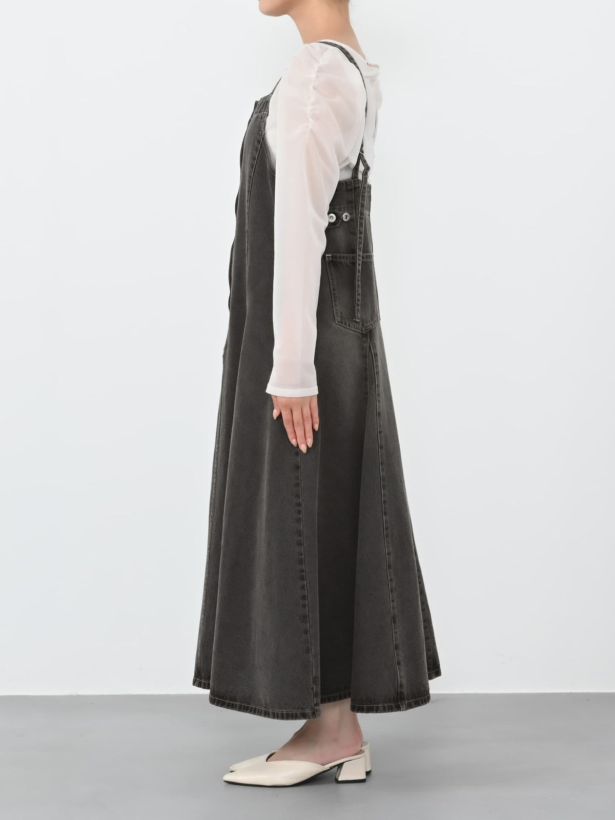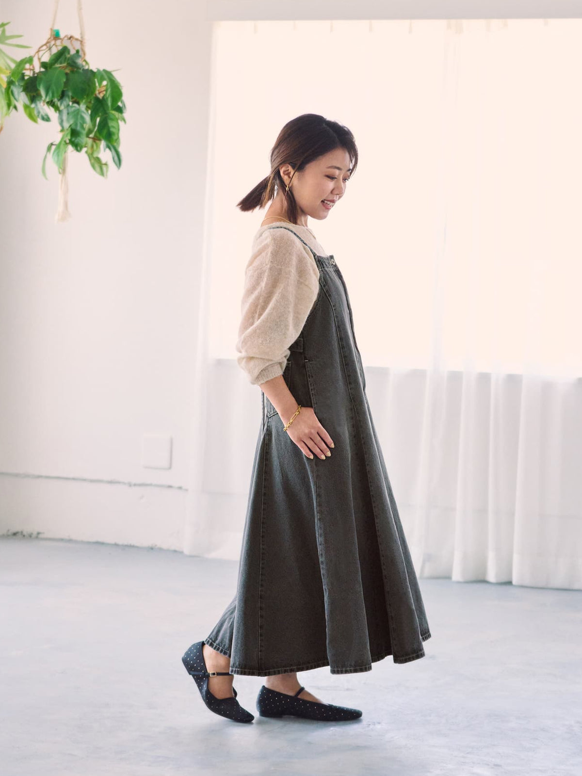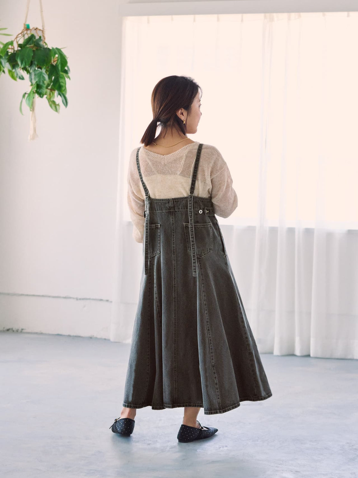 調整可能が嬉しい!軽やかなフレアが女性らしさを引き立てる大人のジャンパースカート