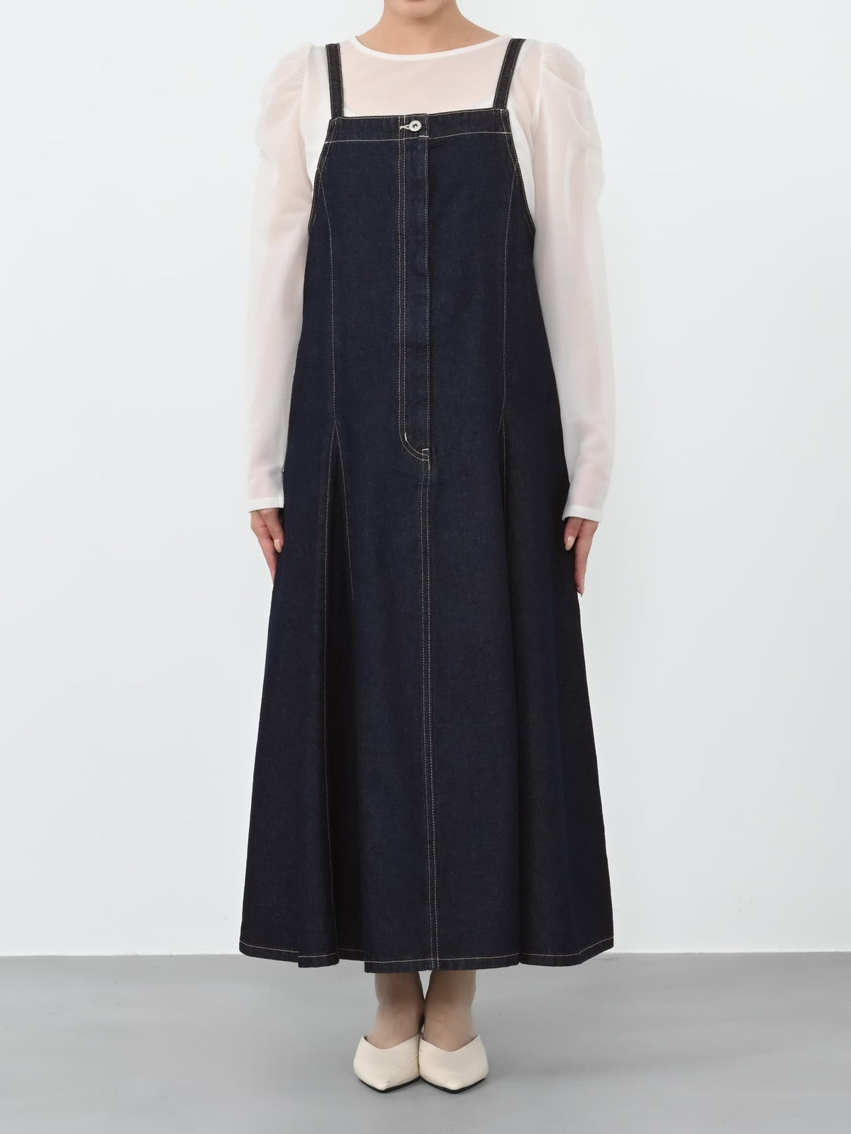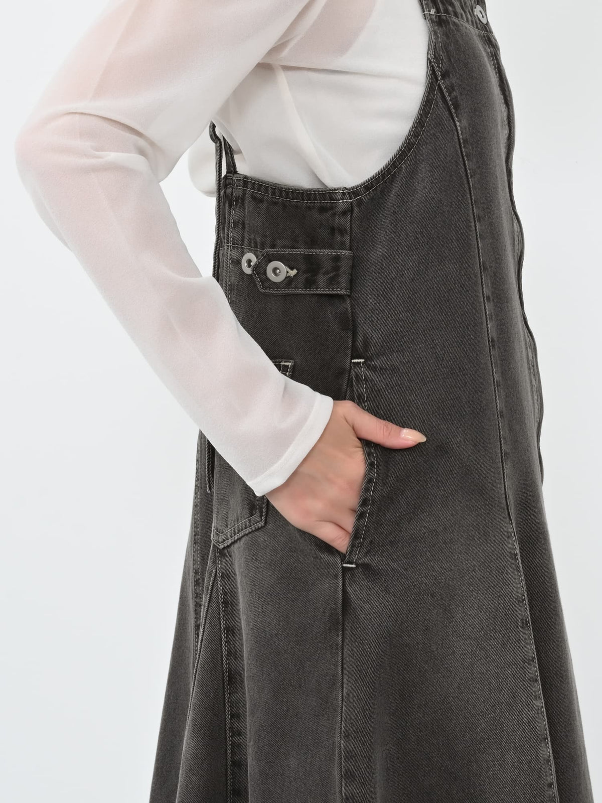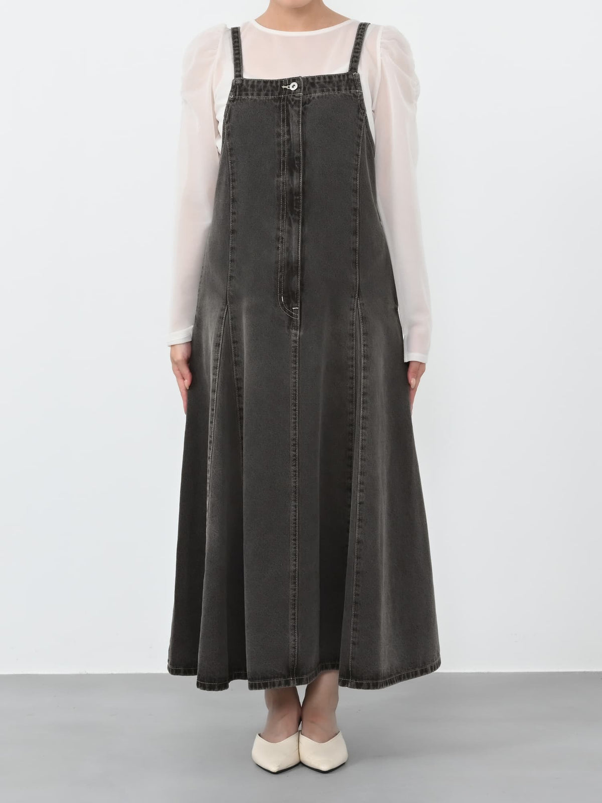 調整可能が嬉しい!軽やかなフレアが女性らしさを引き立てる大人のジャンパースカート