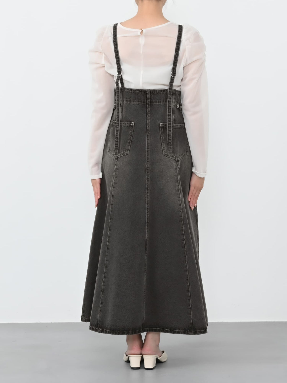 華奢なストラップで大人っぽく見せてくれ、丈感の調整、後ろのボタンでウエストの調整が可能なのも嬉しいポイントです。