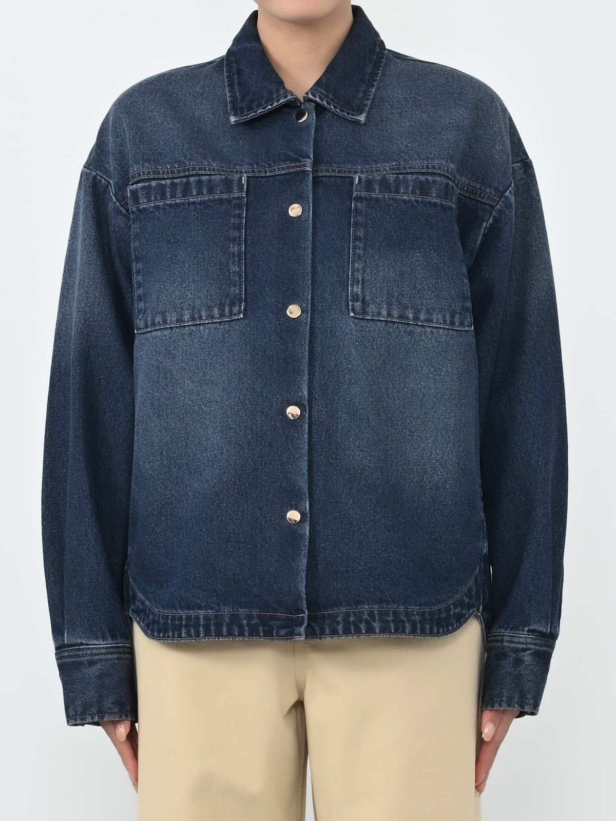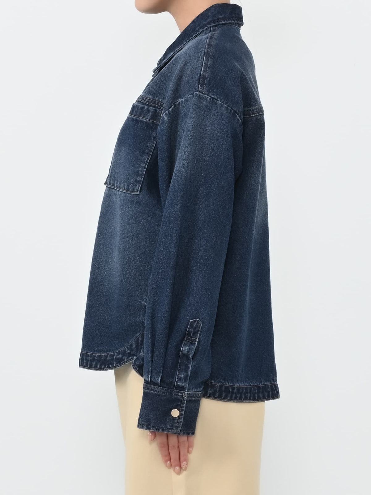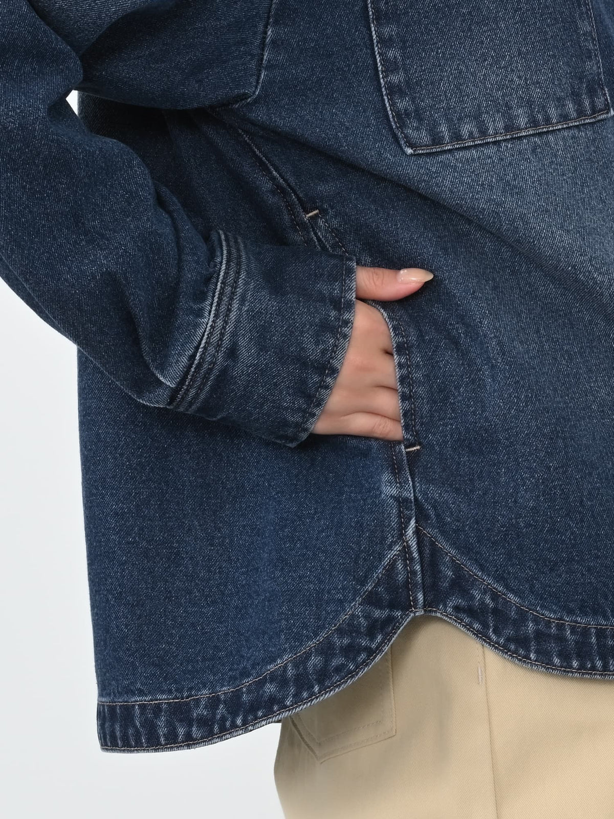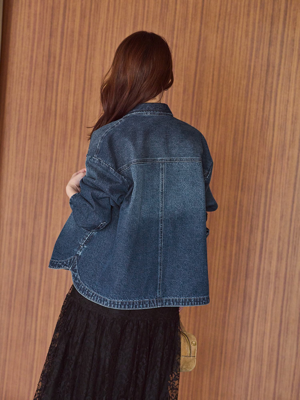 トレンド感とこなれ感を両立したゆったりとしたシルエットのデニムシャツデザインジャケット。