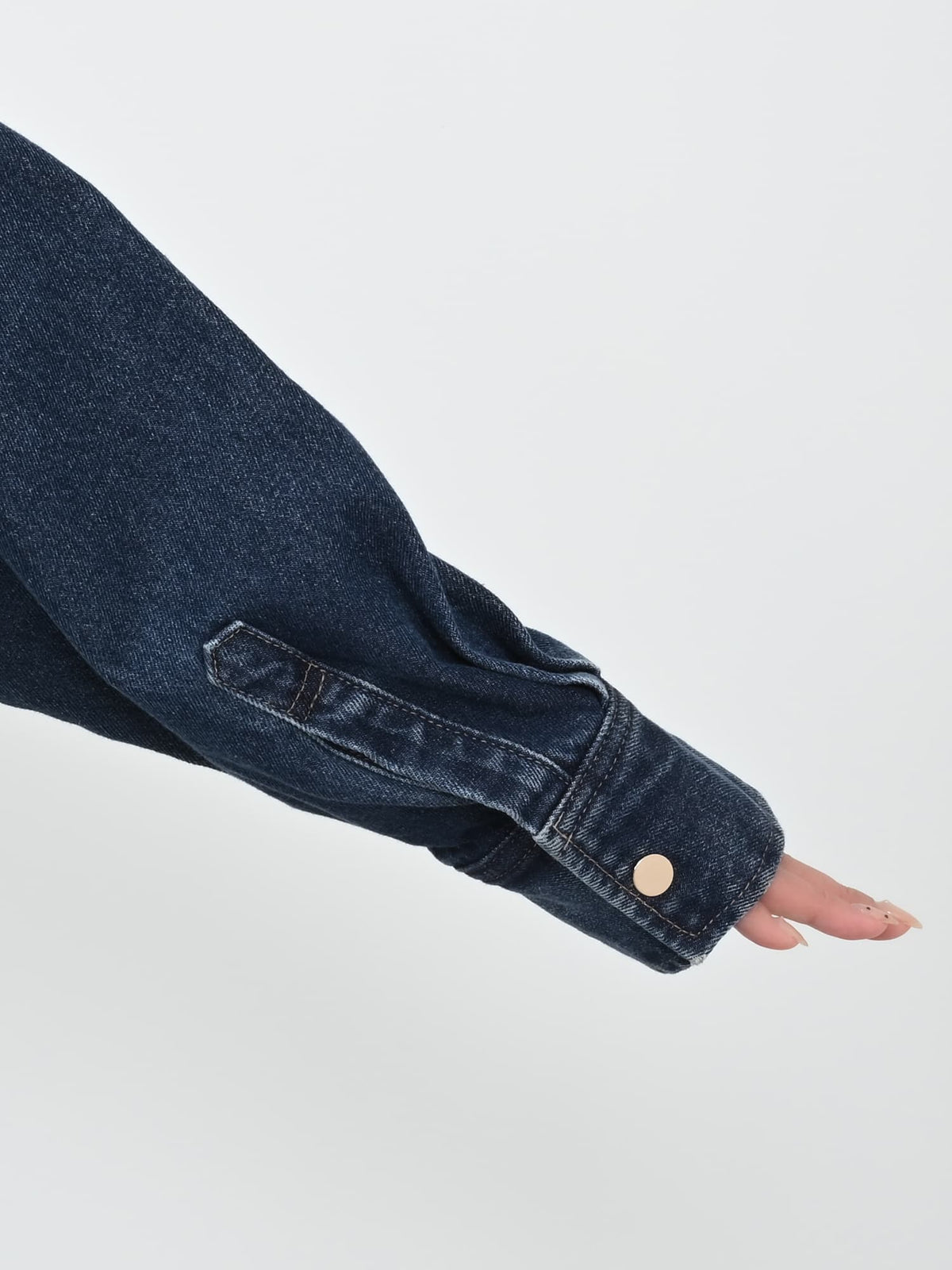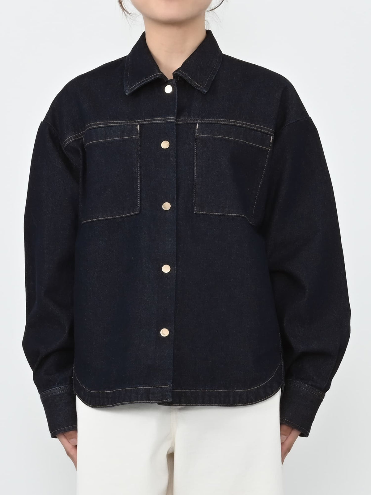シャツってよりかは薄手デニムジャケットって感じで少しハリ感があり春や秋の羽織りに良さそうです。以前COHINAで購入したデニムジャケットは丈が短くてバランス的にスカートに合わせがちだったが、こちらは絶妙な長さでパンツにも合わせやすく汎用性があります。パチっとするタイプのボタンもスッキリ見えして良いし、インディゴの色味が濃すぎず薄すぎず良い。ダークインディゴも欲しくなる。